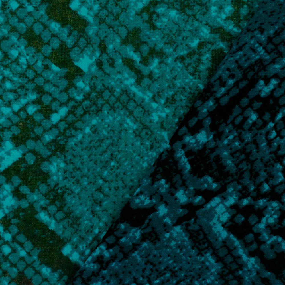 Teal-Black Reptile Printed Poly Chiffon Woven Fabric