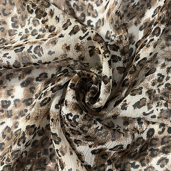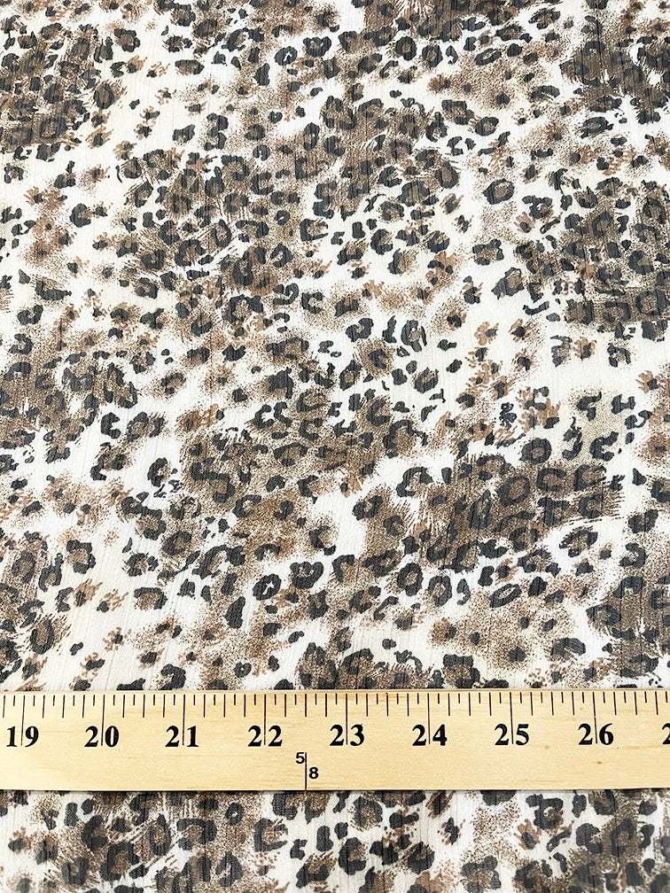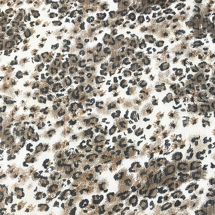 White Multi Animal Crinkled Print Chiffon Fabric