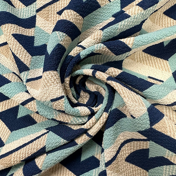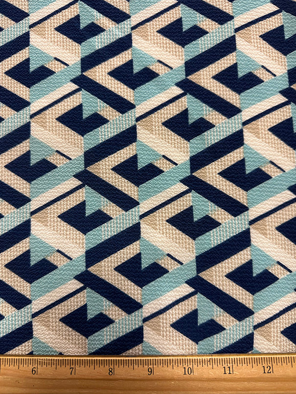 -Light Blue, Navy Blue, Gray, & White Multi Geometric Poly Print High Crepe Fabric