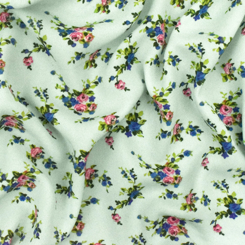 Clean Teal-Blue-Multi Floral Printed Polyester Georgette Woven Fabric