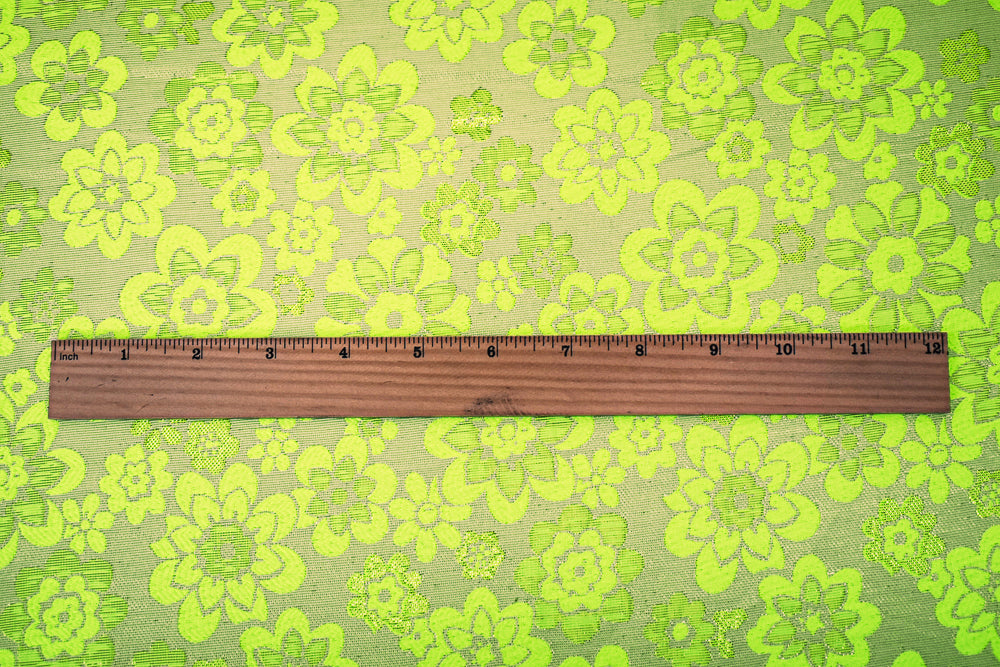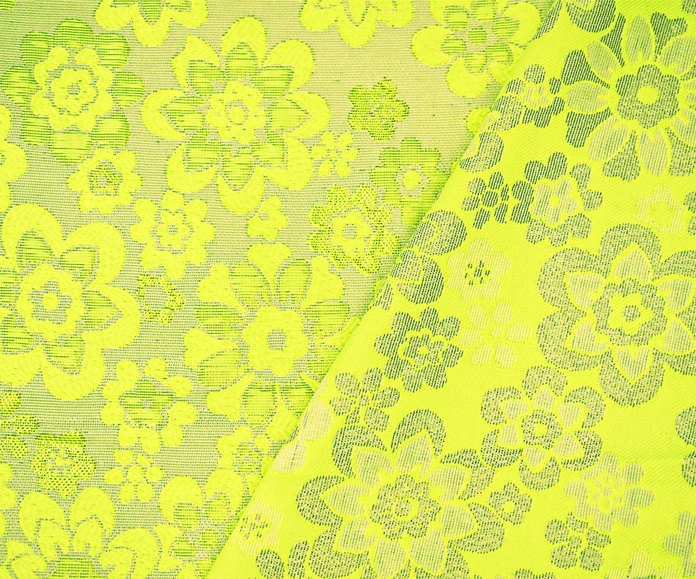 Neon Yellow-Gold-Multi Poly Blend Floral Jacquard Brocade Woven Fabric