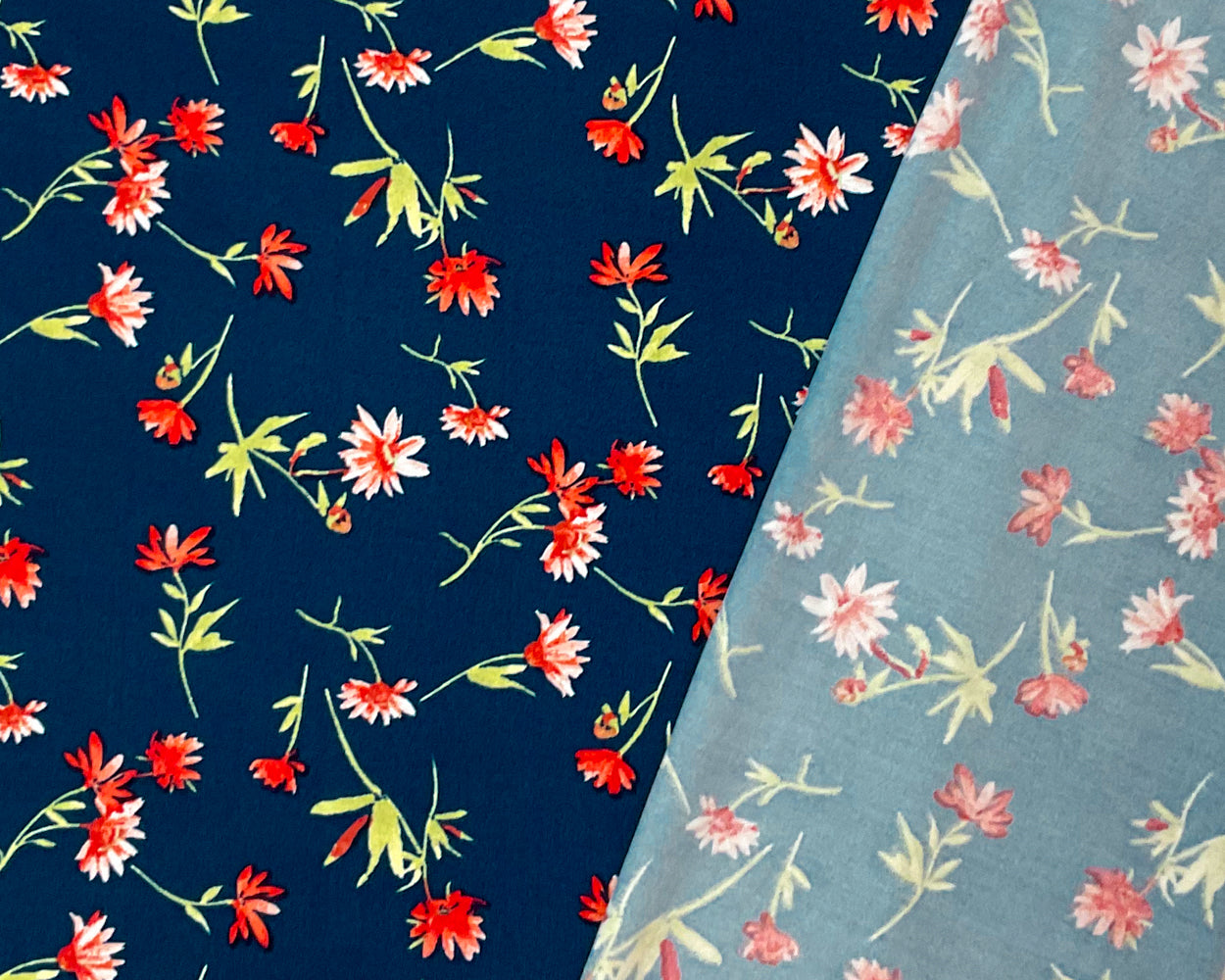 Blue-Multi Poly Spandex Stretch Floral Print DB Jersey Knit Fabric