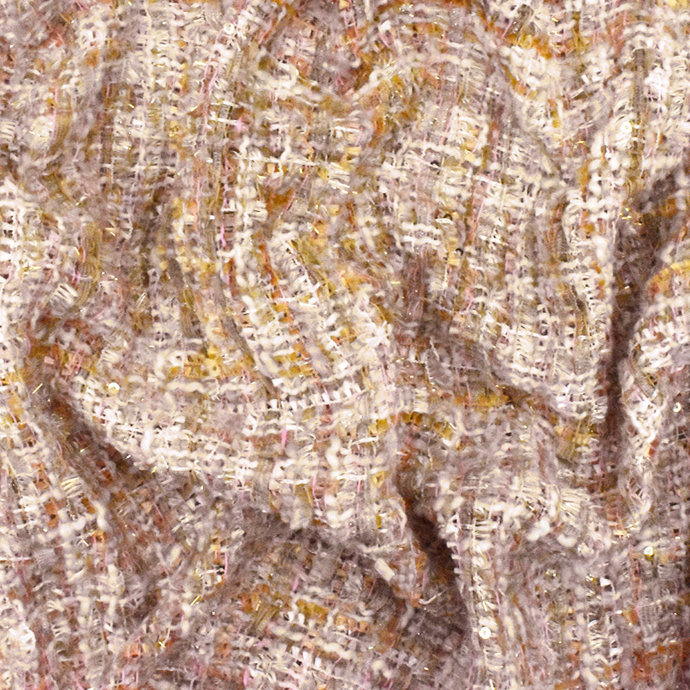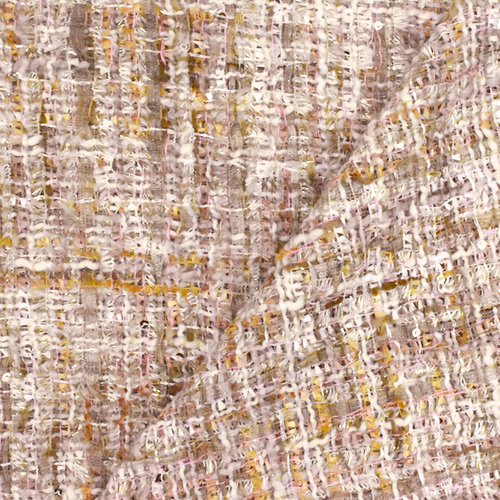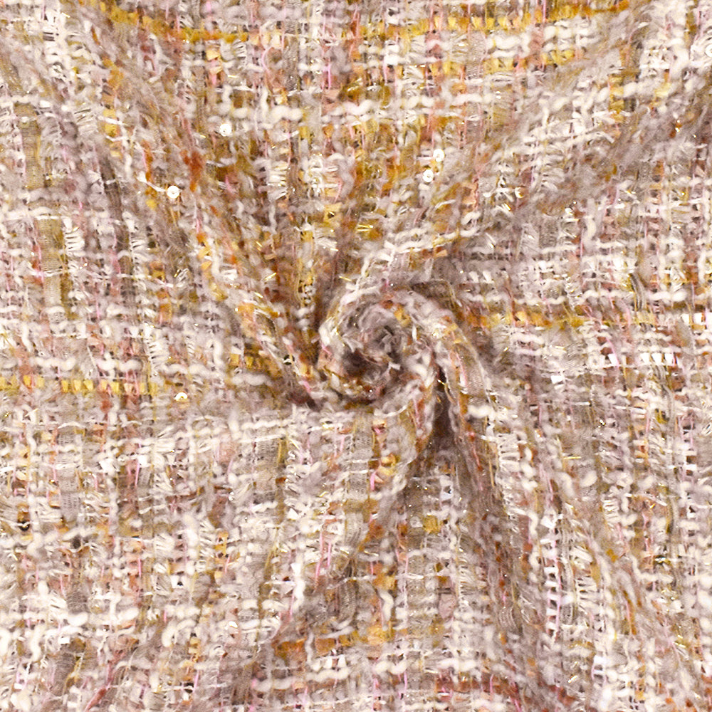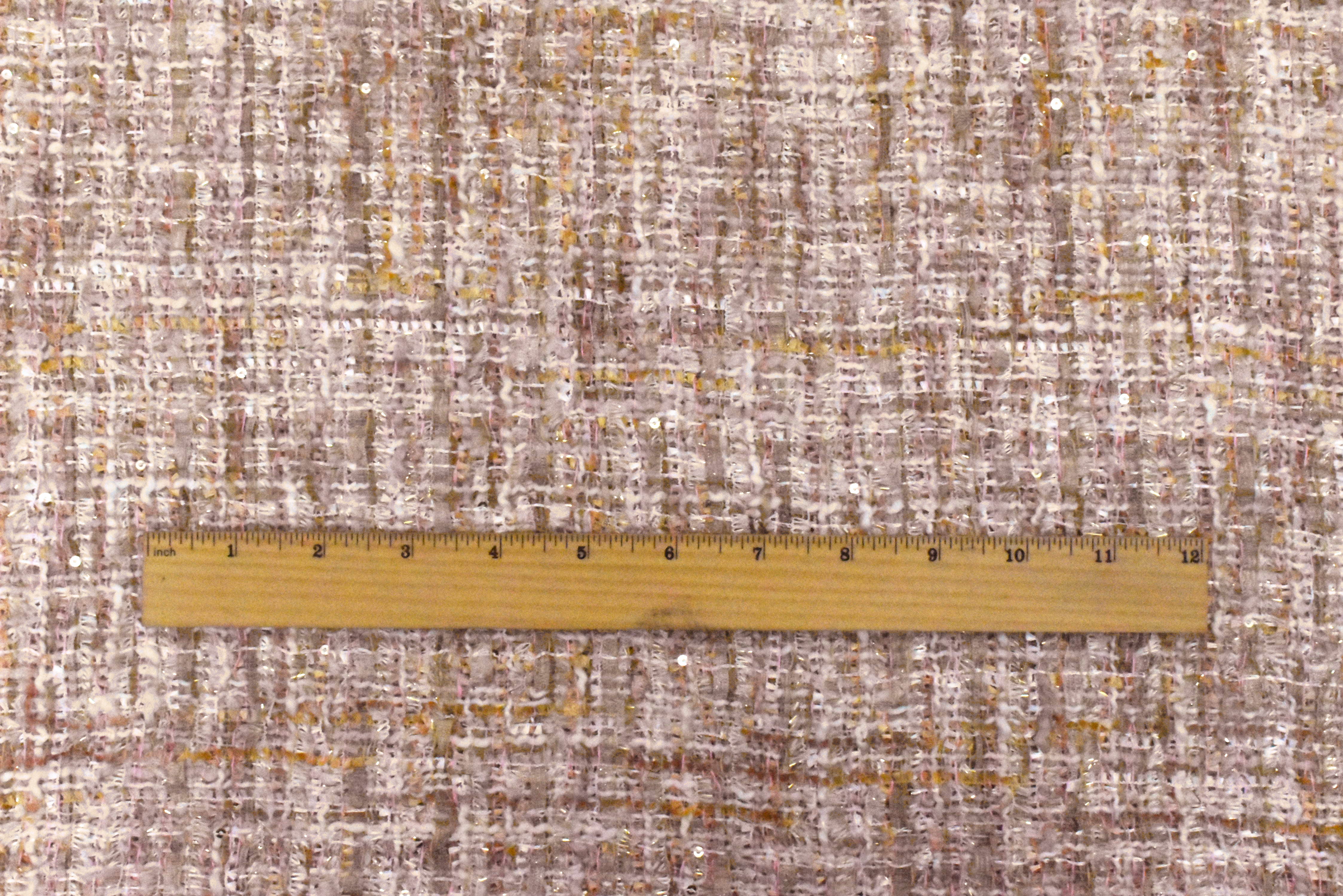 Beige-Pink-Multi Famous Designer Tweed Sequin Woven Jacketing Fabric