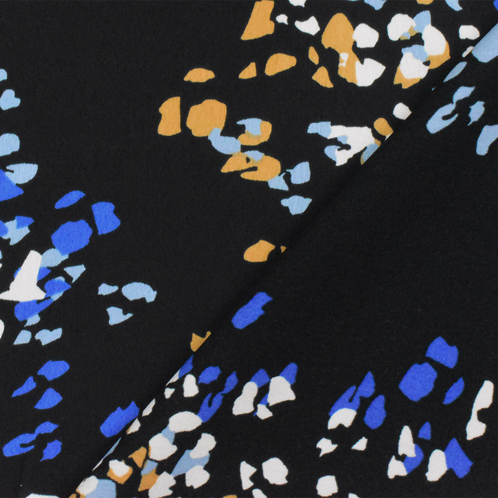 Black-Blue-Multi Abstract Printed Stretch Poly Spandex Satin Woven Fabric