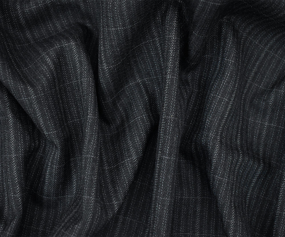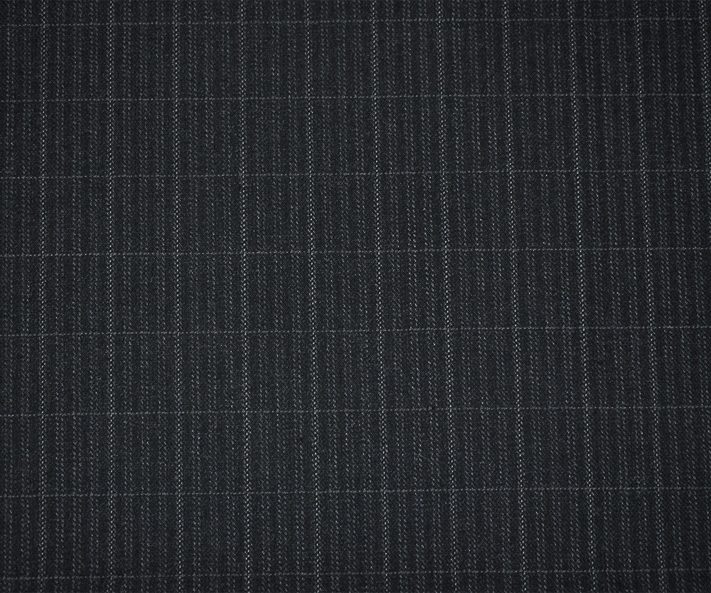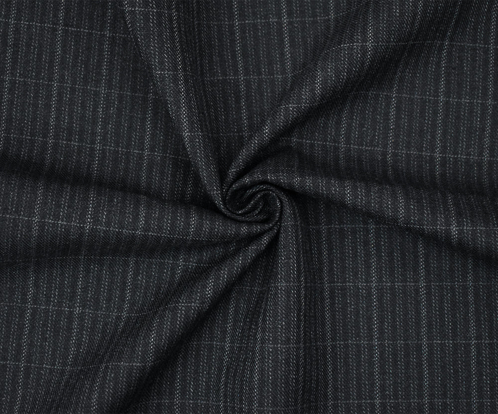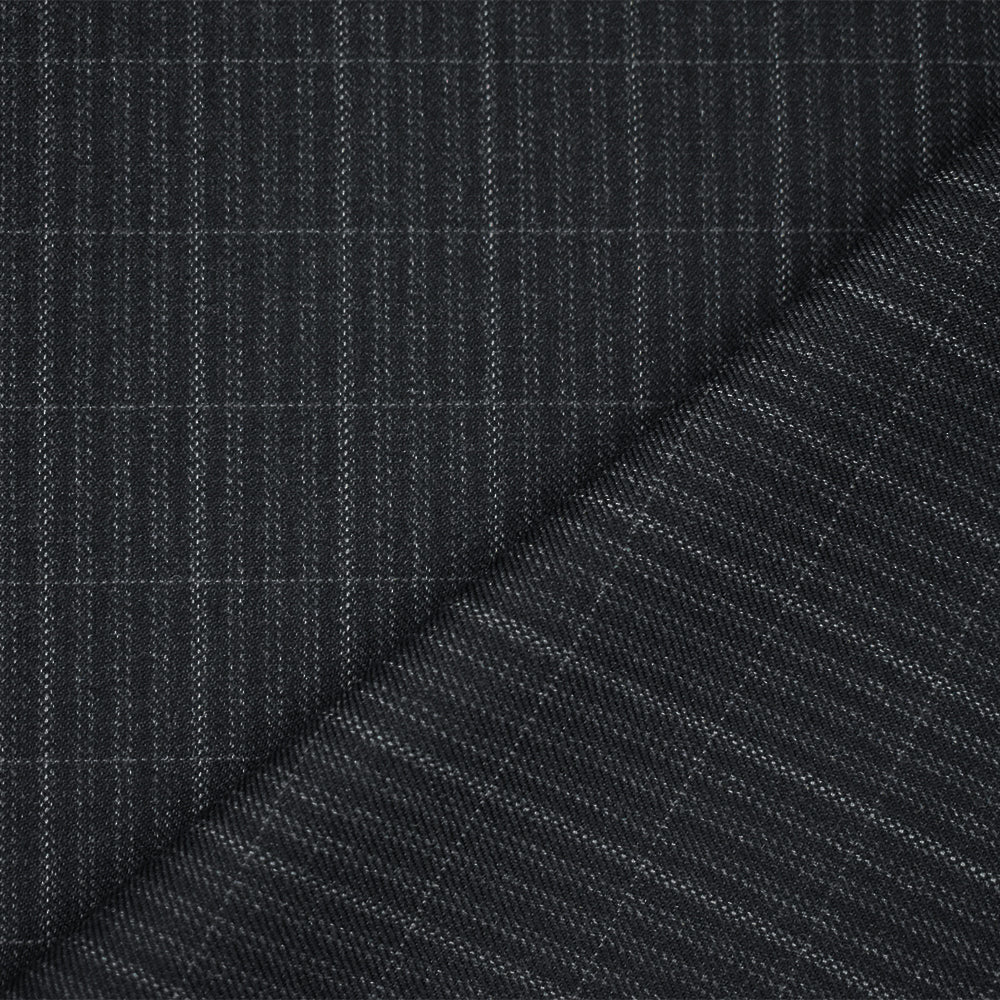 Black-Gray Polyester Wool Plaid Striped Pattern Twill Suiting Fabric