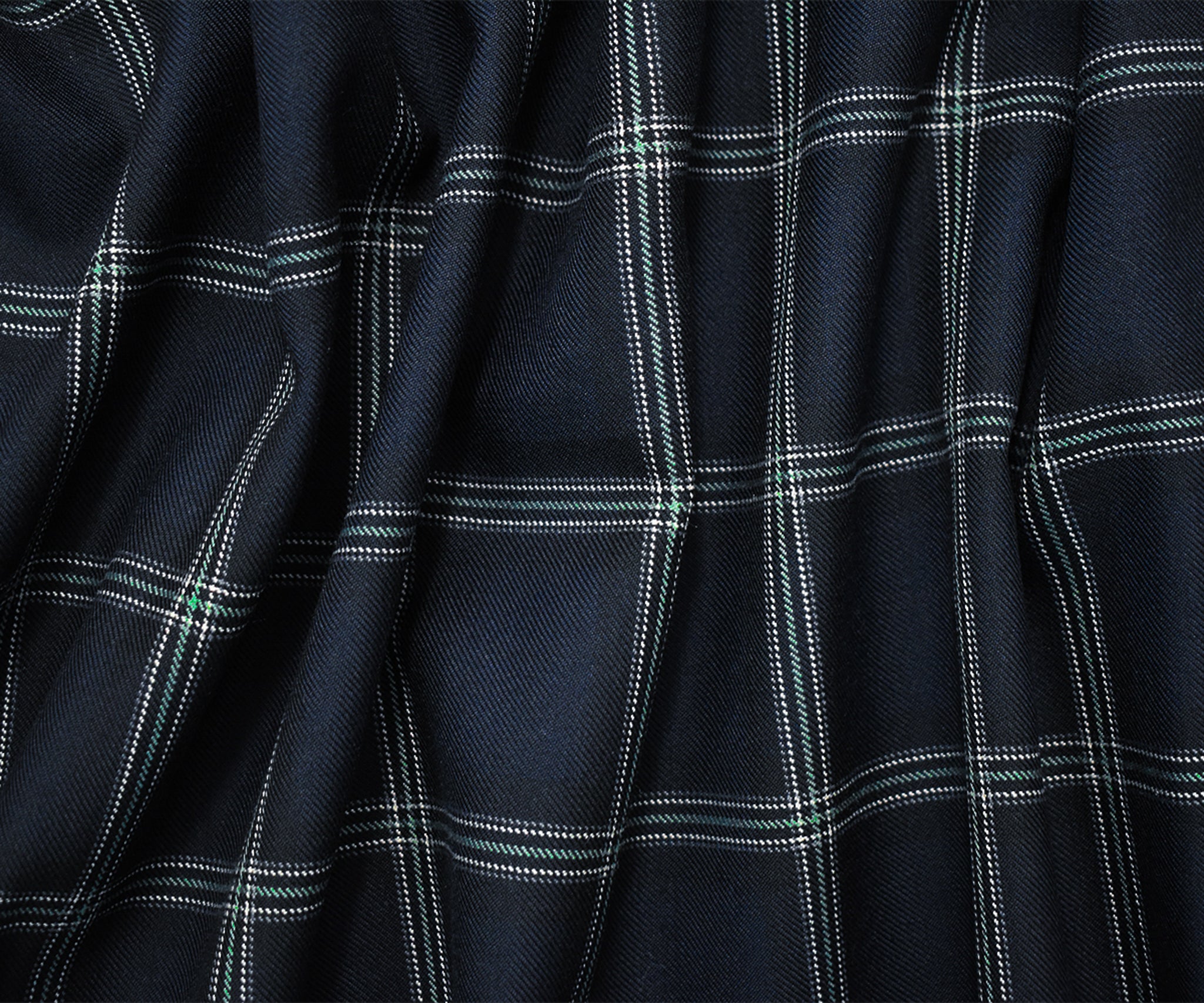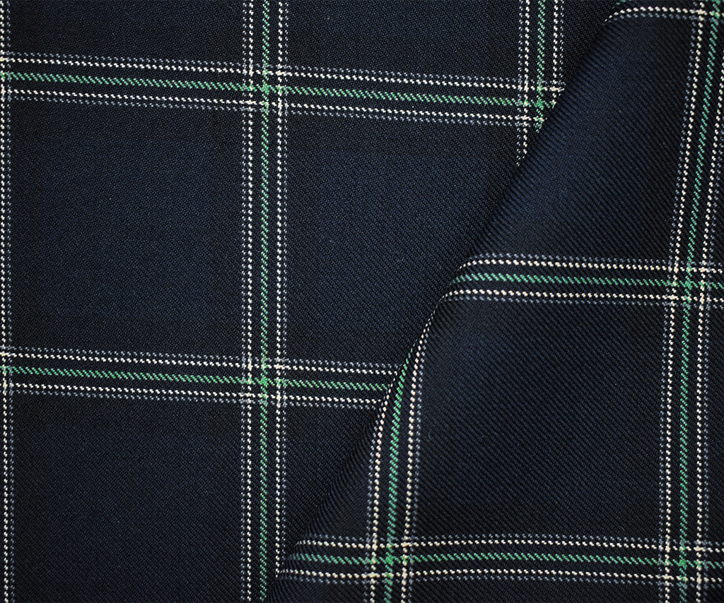 Black-Green-Multi Poly-Wool Plaid Check Woven Twill Suiting Fabric