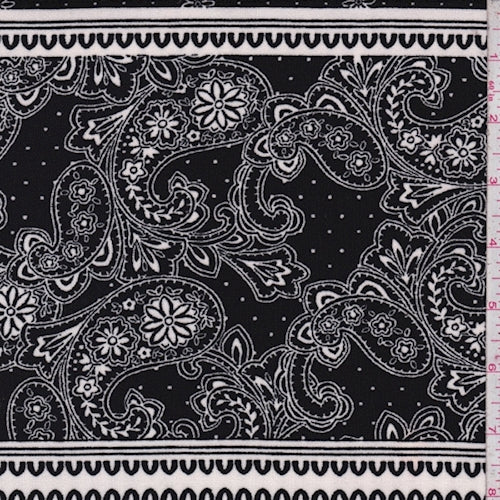 Black/Ivory Paisley Stripe Crinkled Crepe Fabric