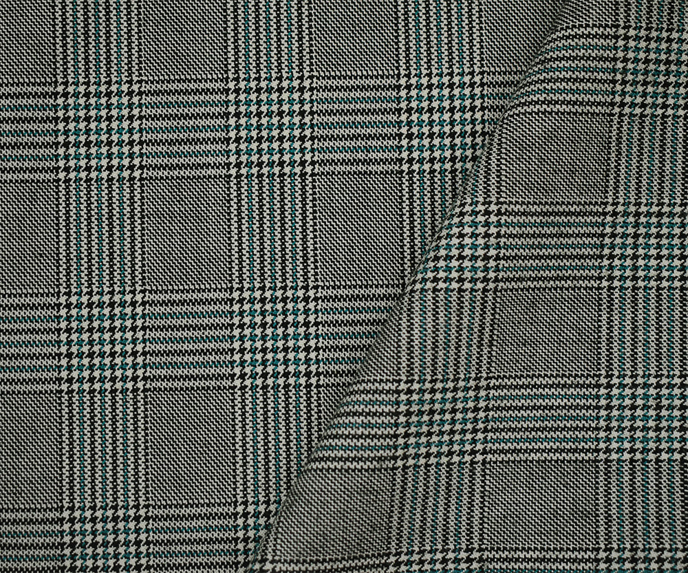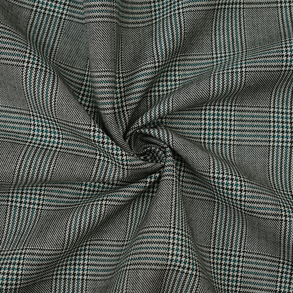 Black-Off-White-Green Poly-Wool Glen Plaid Check Suiting Woven Fabric