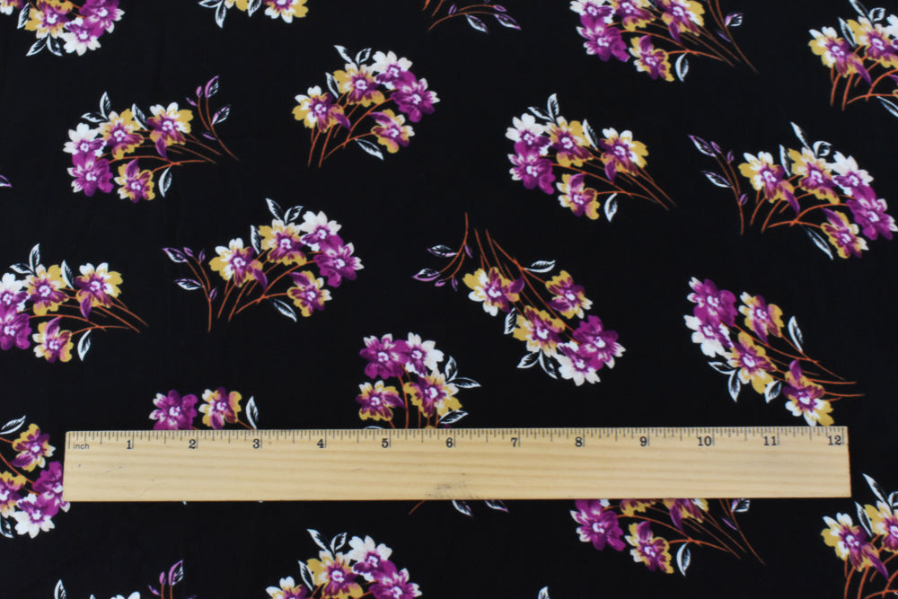 Black-Purple-Multi Floral Printed Poly Twill Satin Woven Fabric