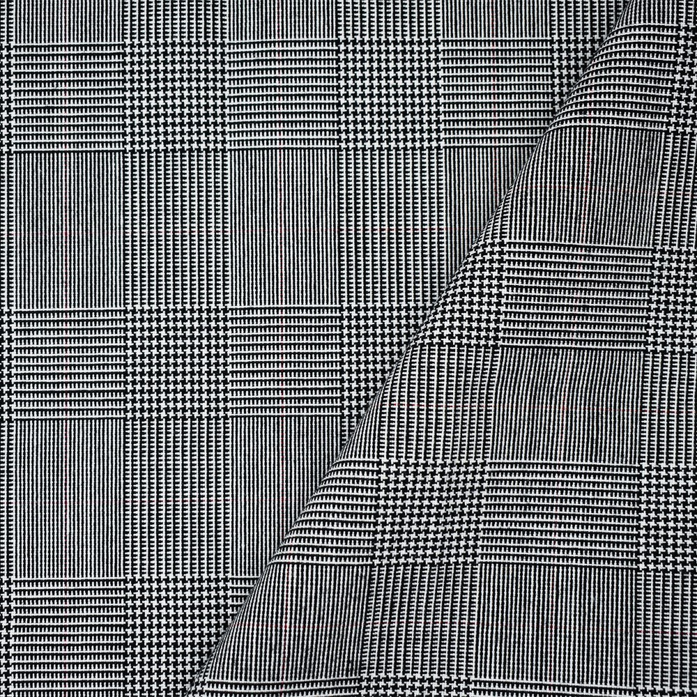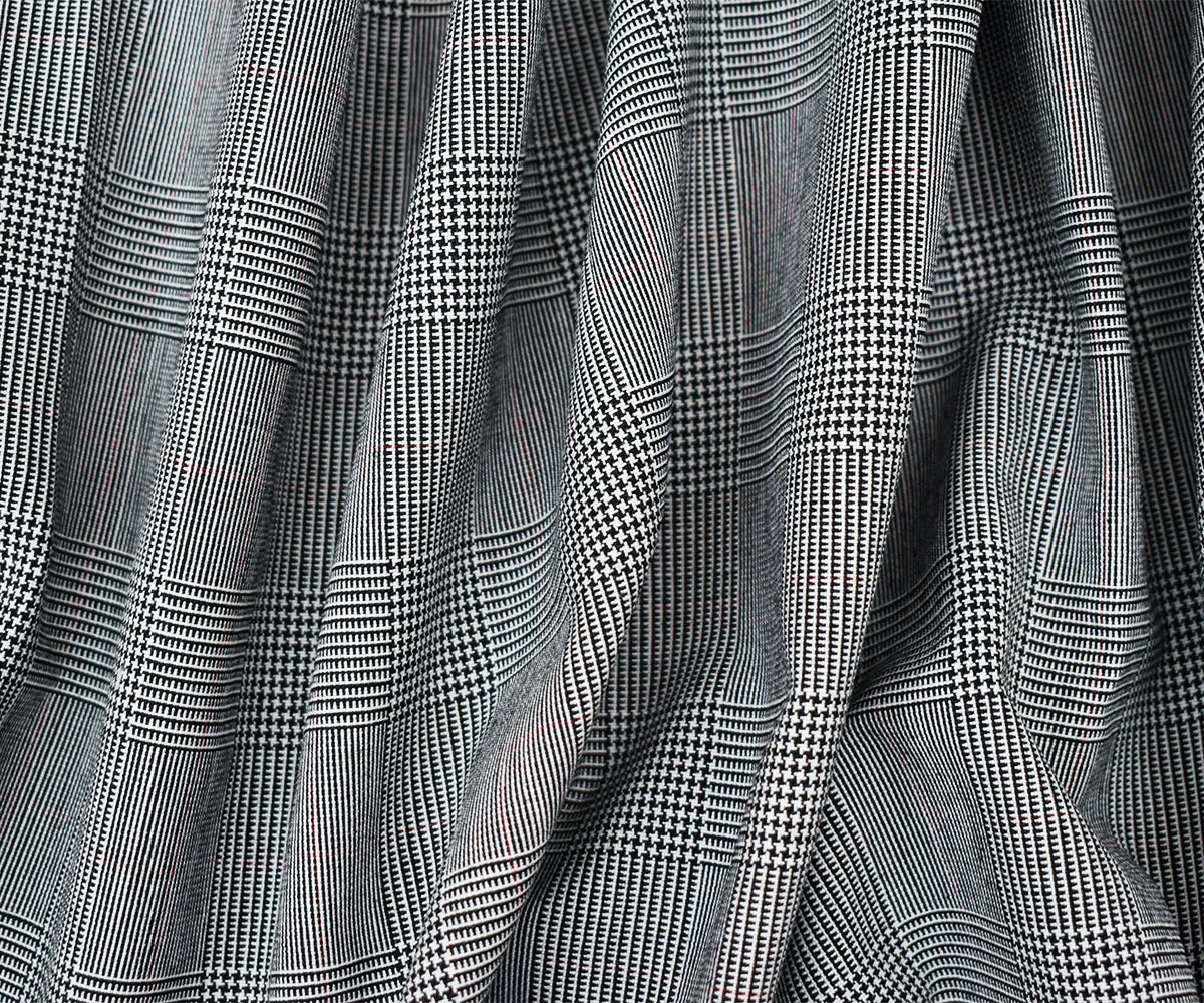 Black-White-Red Poly Wool Glen Plaid Woven Shirting Fabric