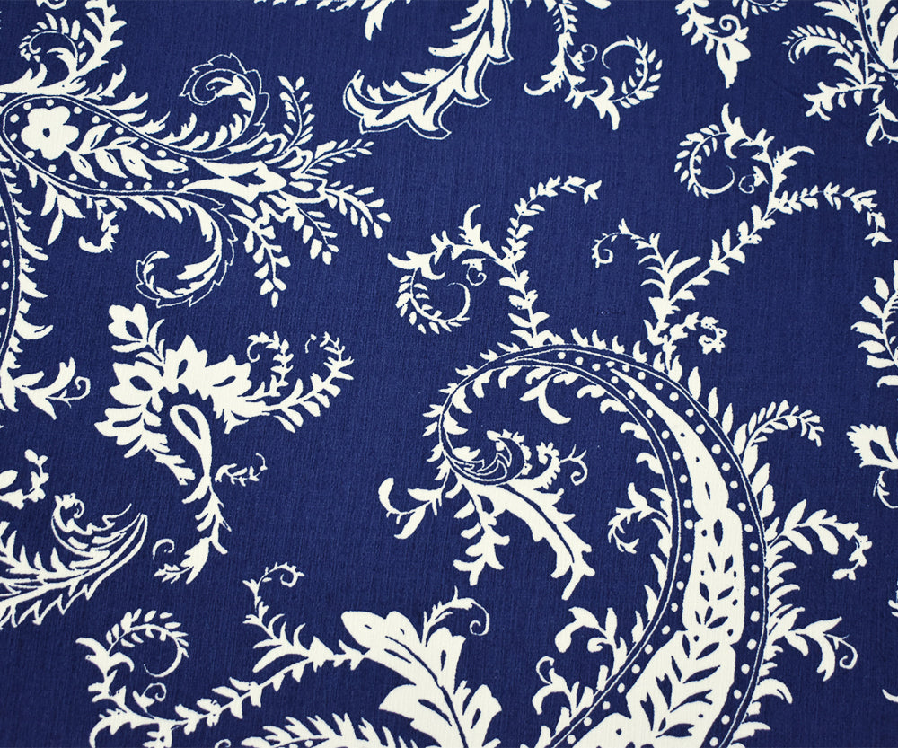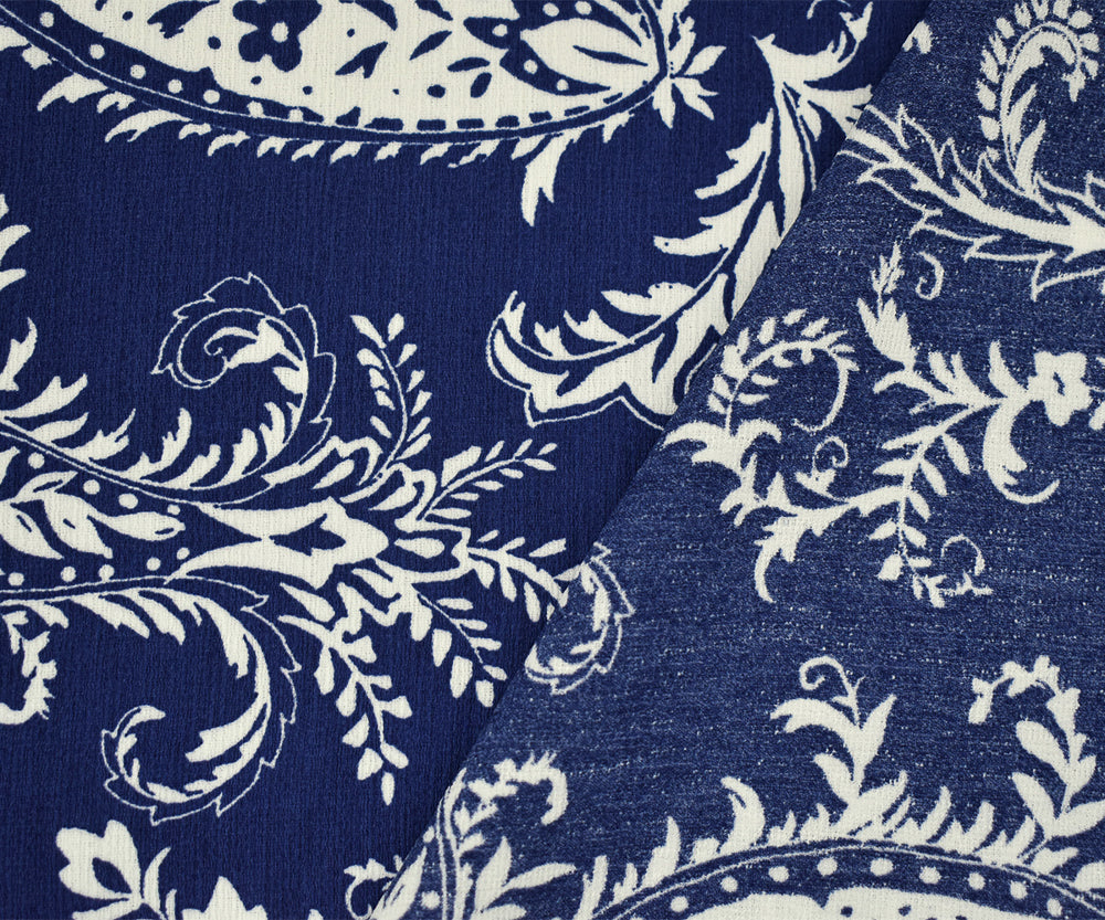 Deep Blue-White Paisley Printed Poly Slub Momie Crepe Woven Fabric