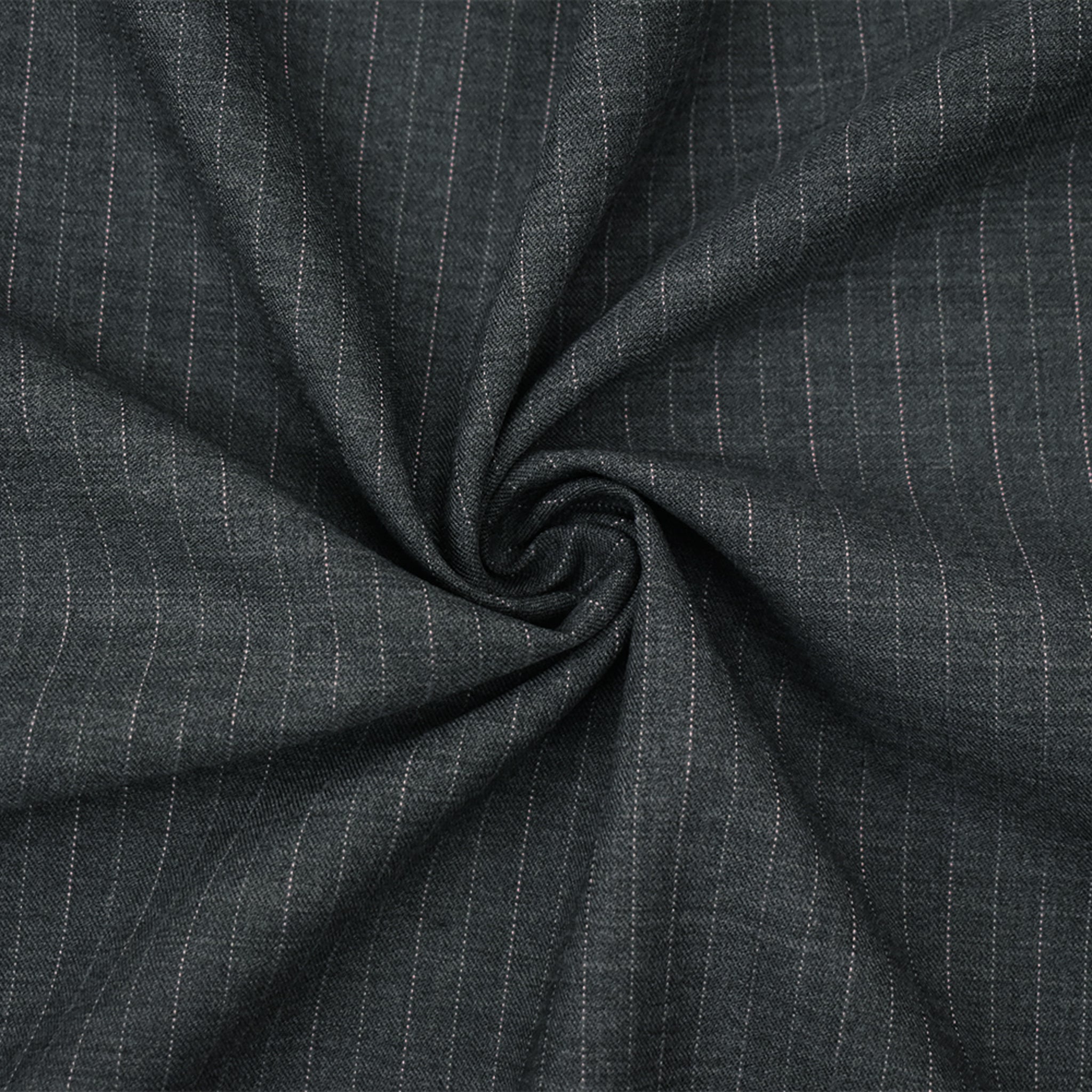 -Polyester and wool blend pinstripe twill suiting woven fabric