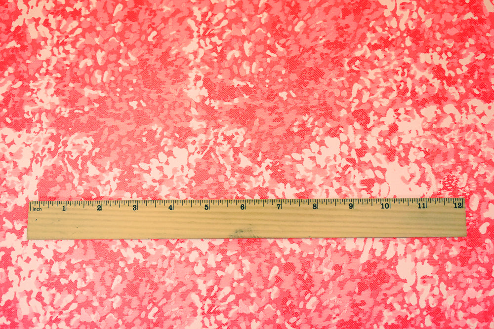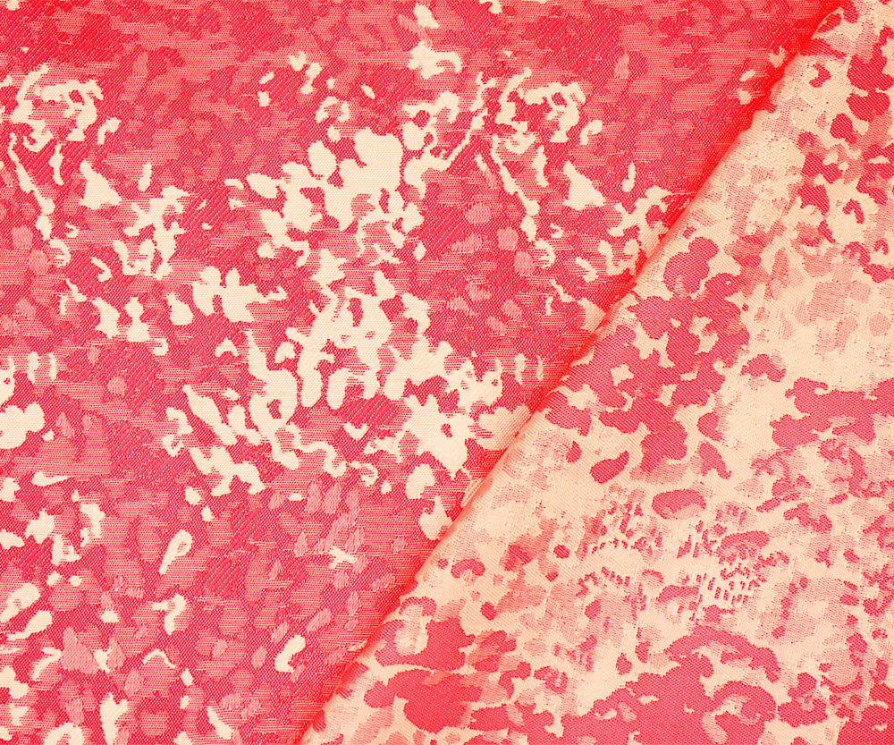 Neon Pink-Off White Polyester Abstract Camouflage Jacquard Woven Fabric
