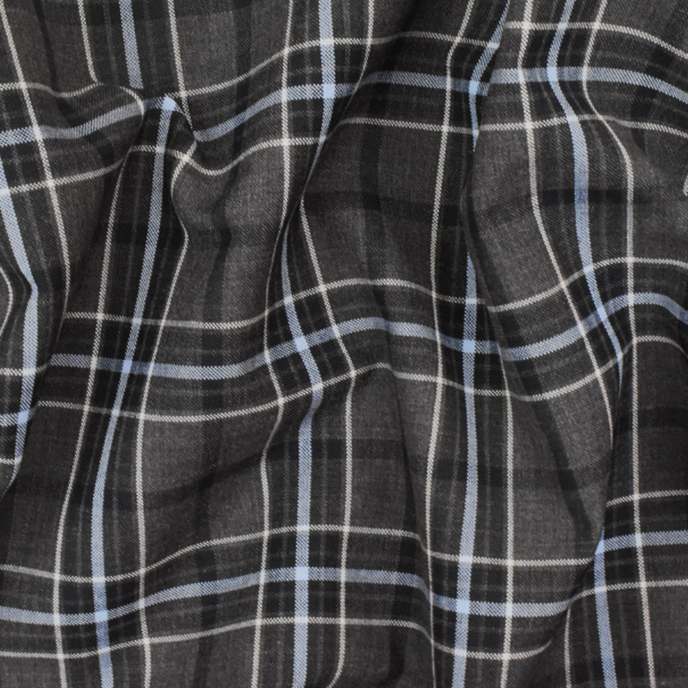 Slate Gray-Blue-Multi Plaid Poly-Wool Woven Suiting Fabric