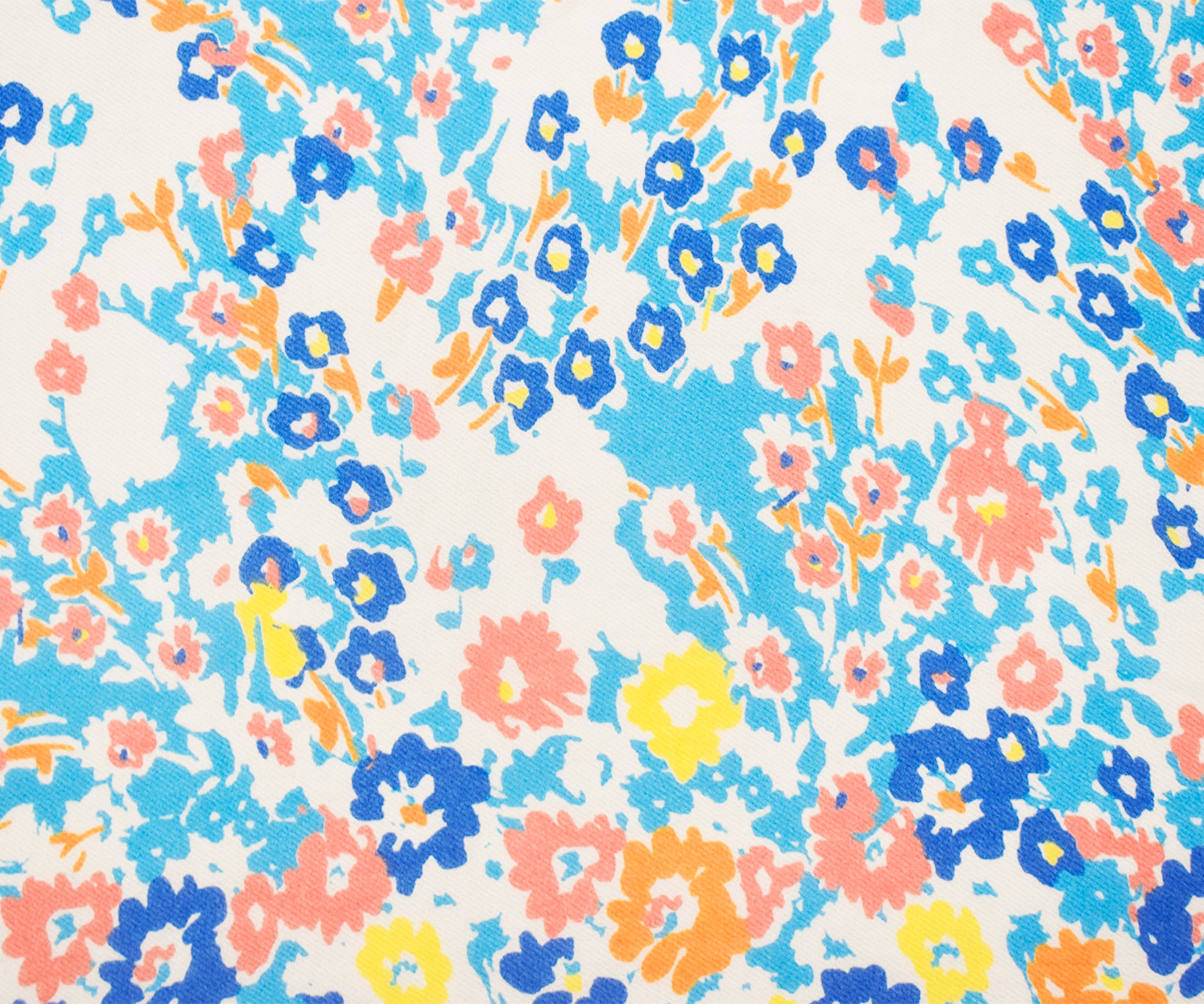 Aqua Blue-Orange-Multi Poly Floral Printed Chiffon Woven Fabric