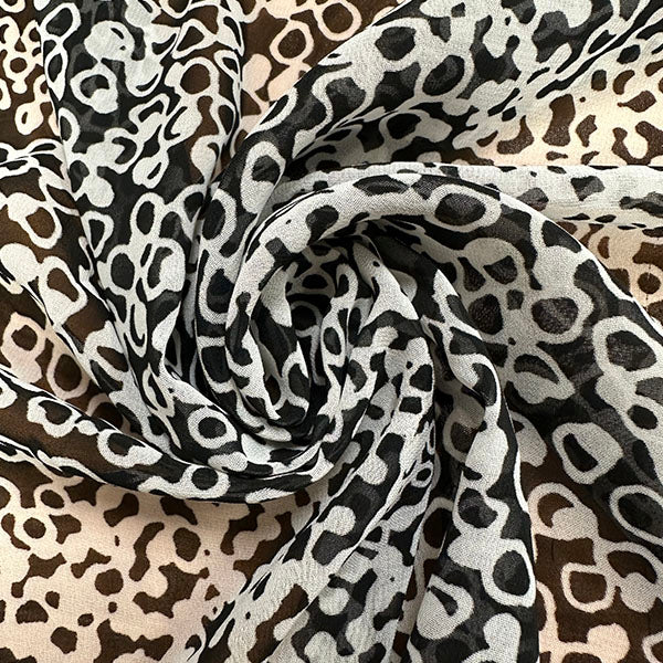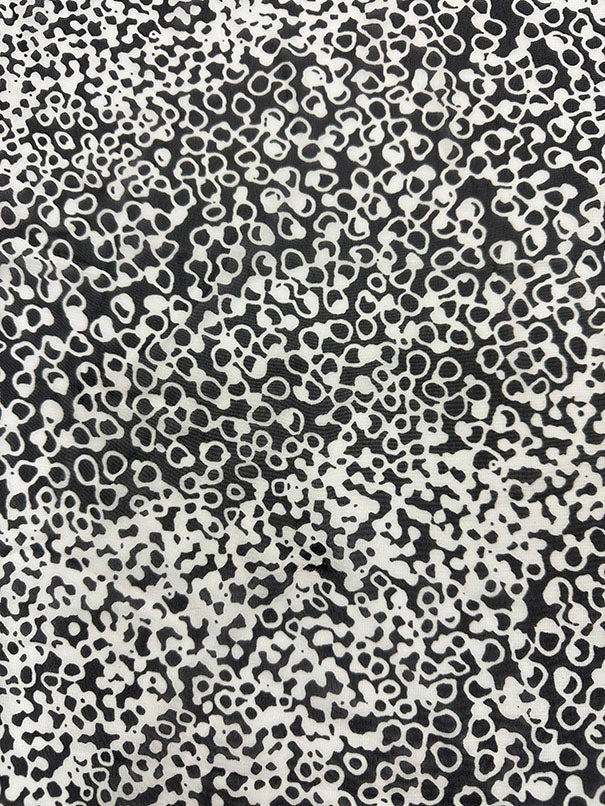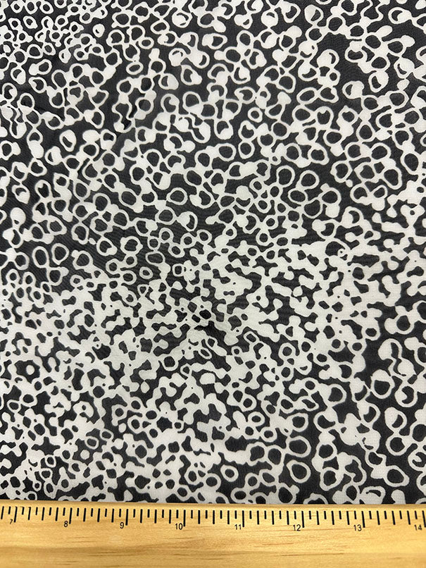 -Black and White Circle Print Poly Sheer Chiffon Fabric