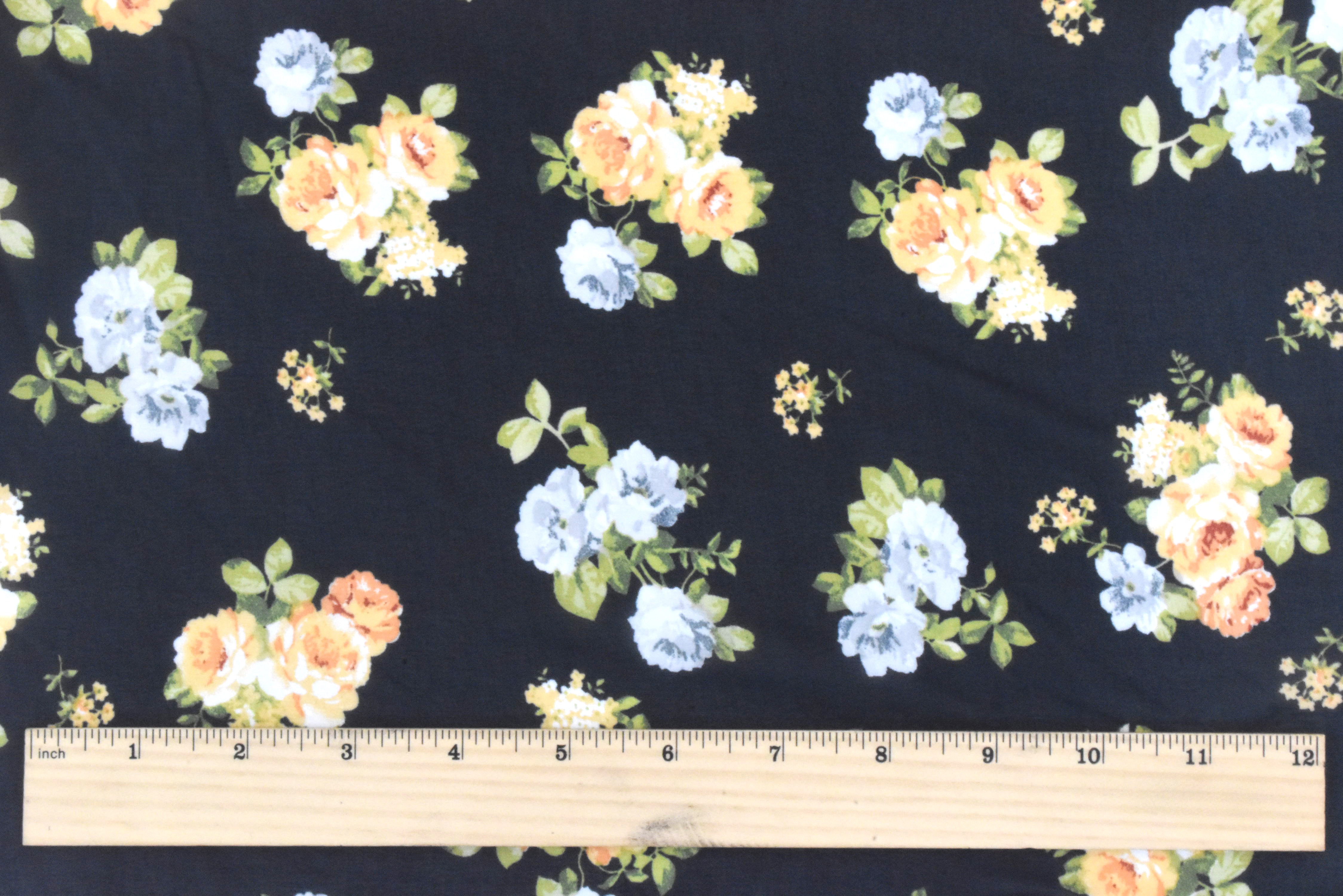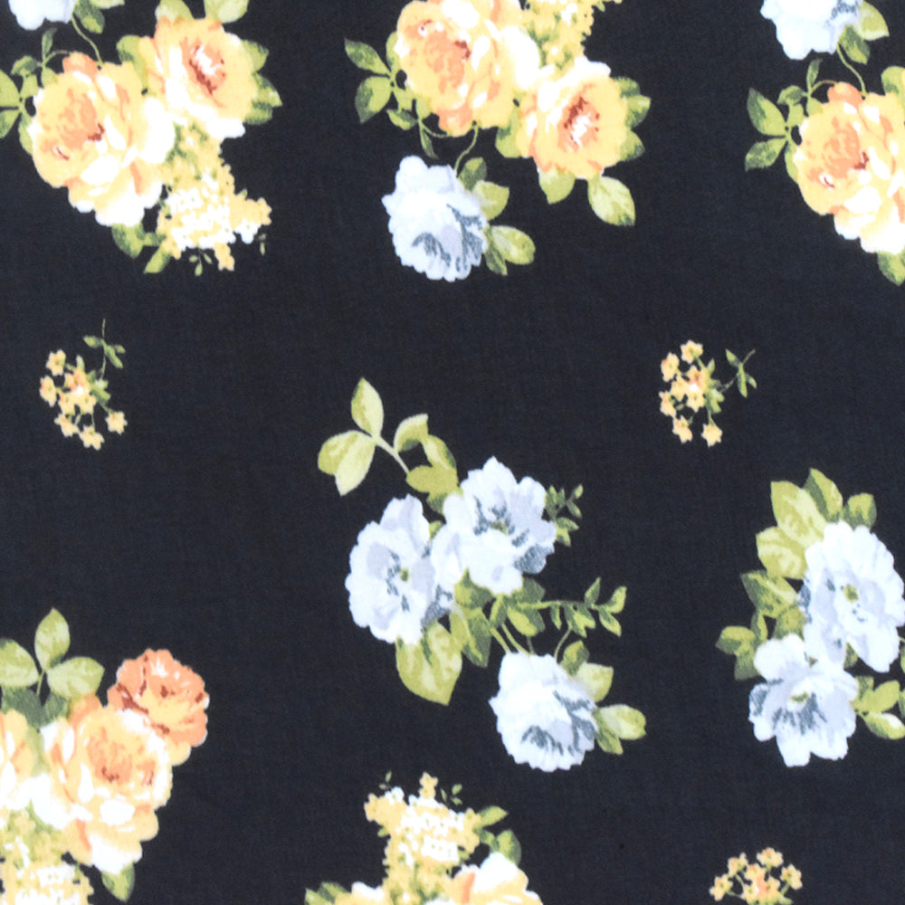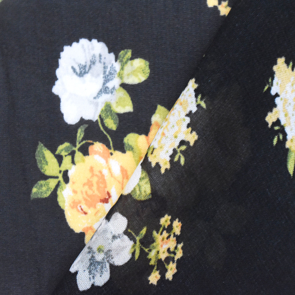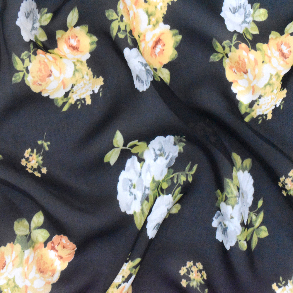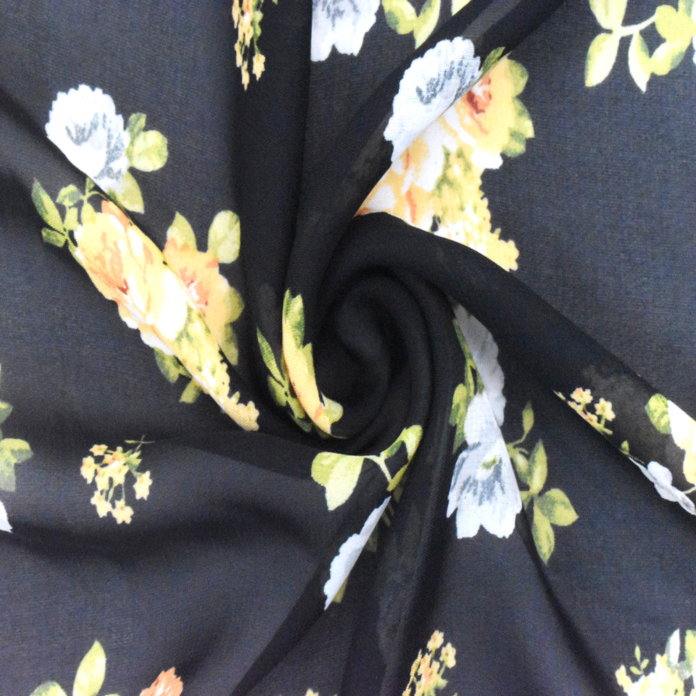 Black-Antique Yellow-Multi Floral Printed Chiffon Fabric