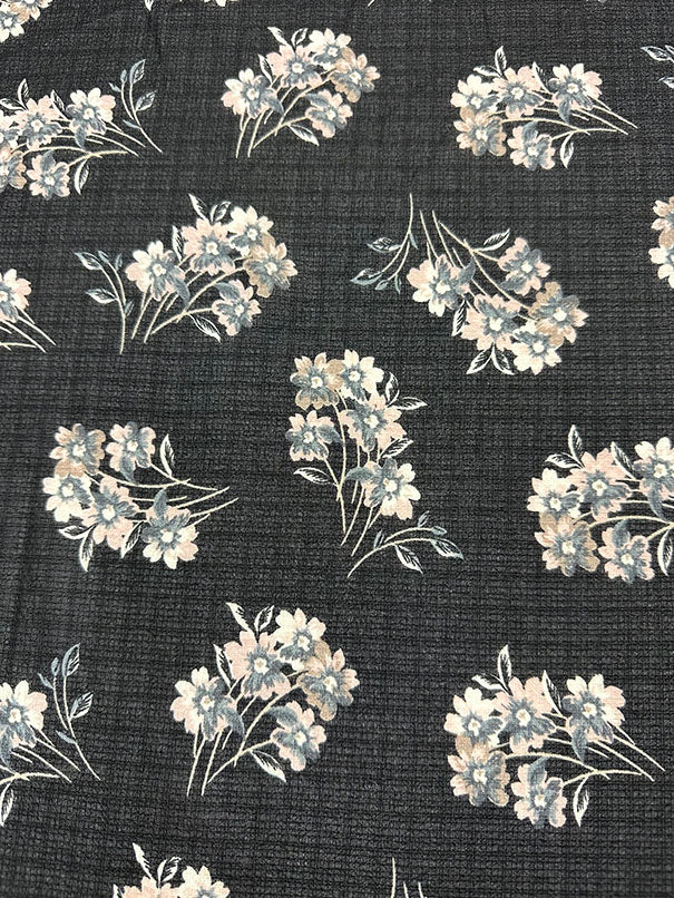 Black Floral Print Ripstop Look Poly Chiffon Fabric