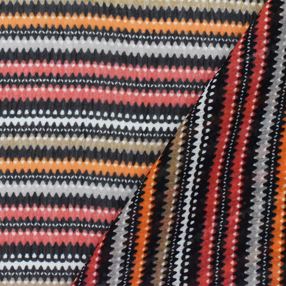 Black-Multi Mini Wave Stripe Printed Poly Crinkle Yoryu Chiffon Fabric