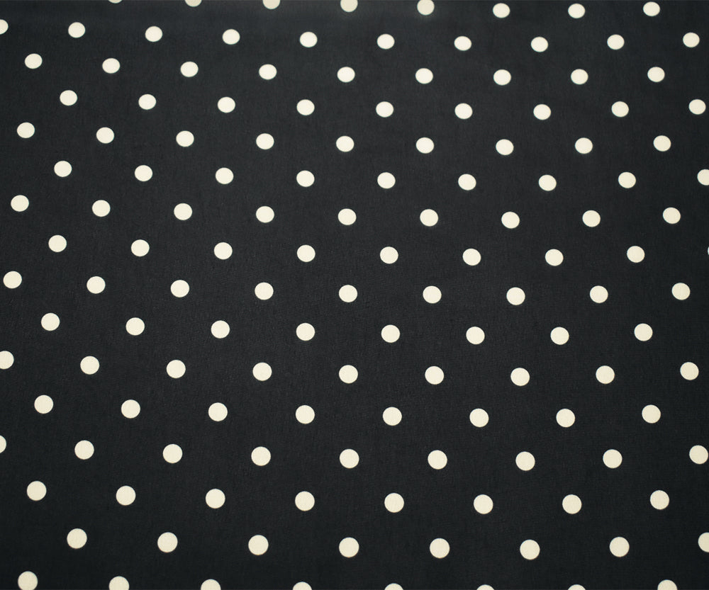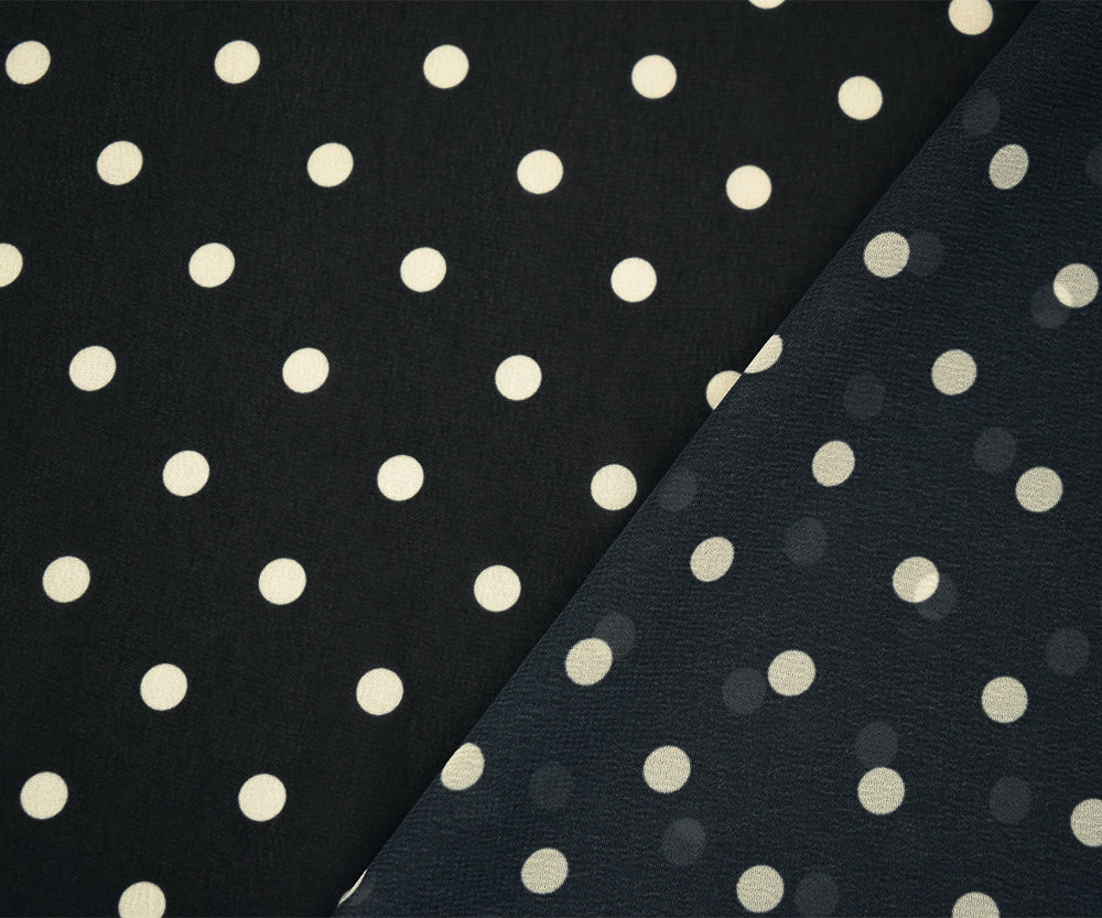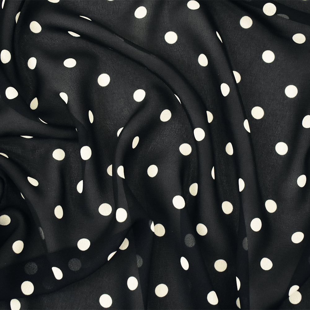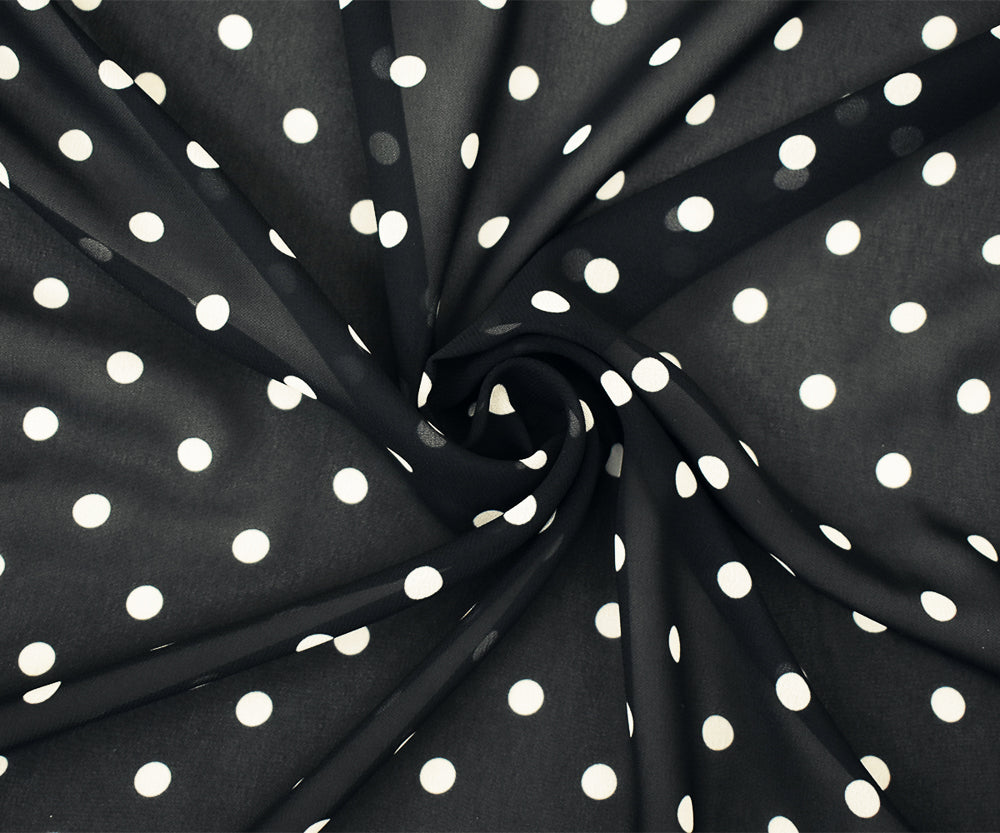 Black-White Polka Dots Printed Poly Chiffon Woven Fabric