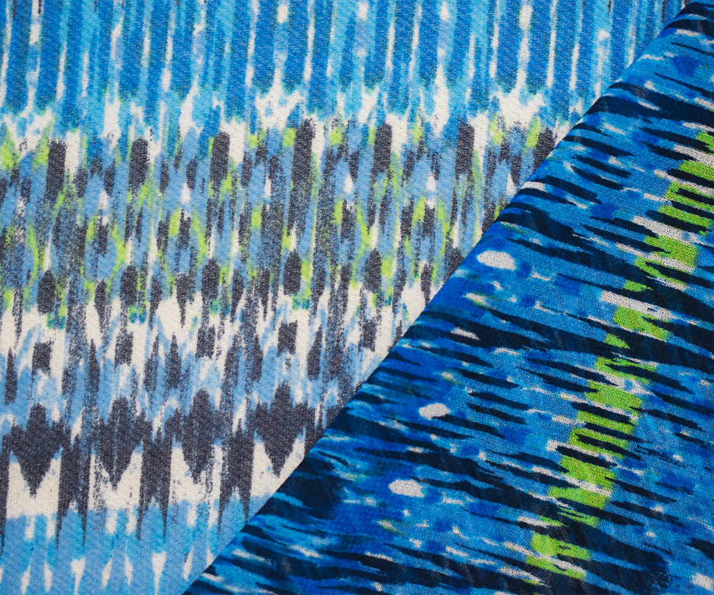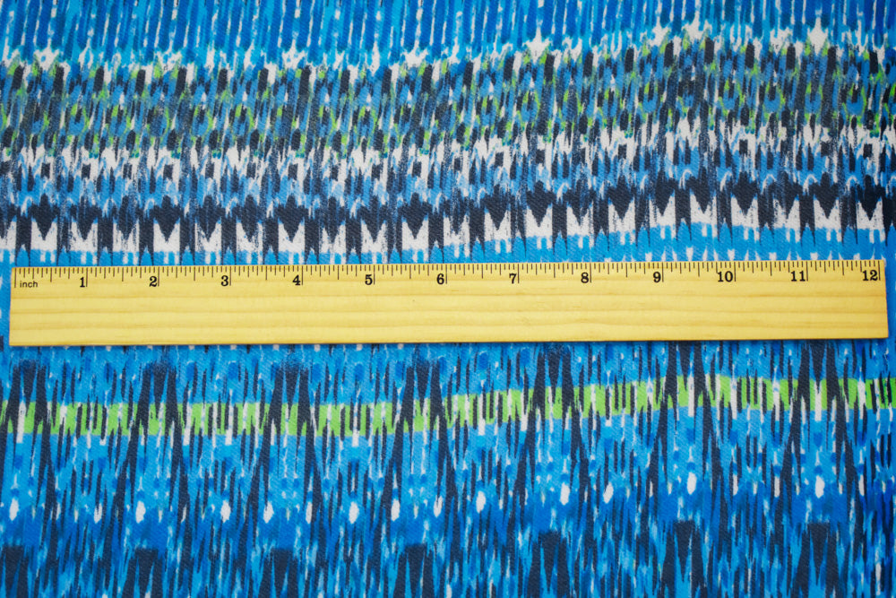 Blue-Lime-Multi Poly Abstract Ikat Printed Chiffon Woven Fabric