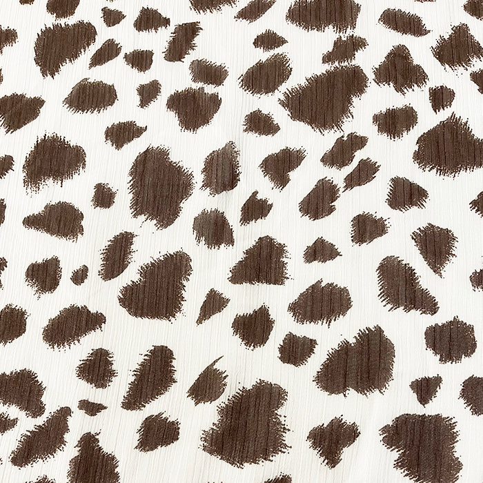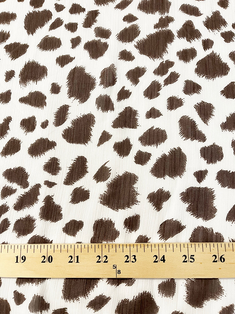 Brown and White Crinkled Print Chiffon Fabric