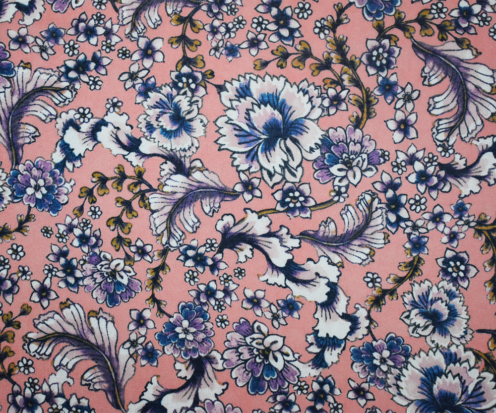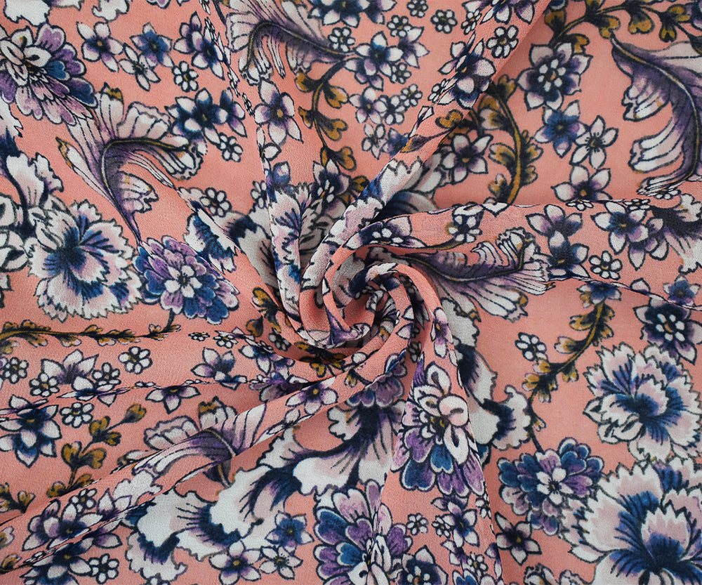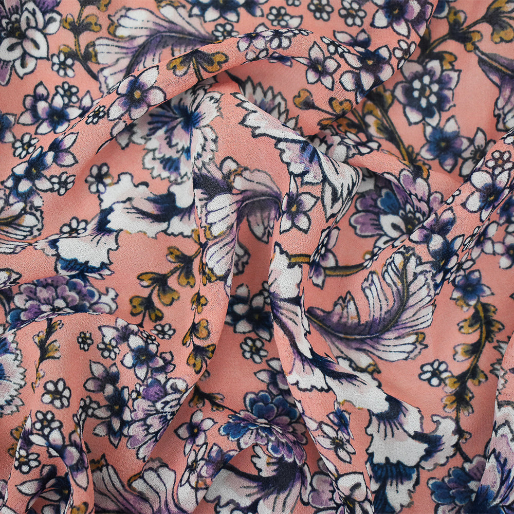 Coral Orange-Pink-Multi Floral Printed Pebble Chiffon Woven Fabric