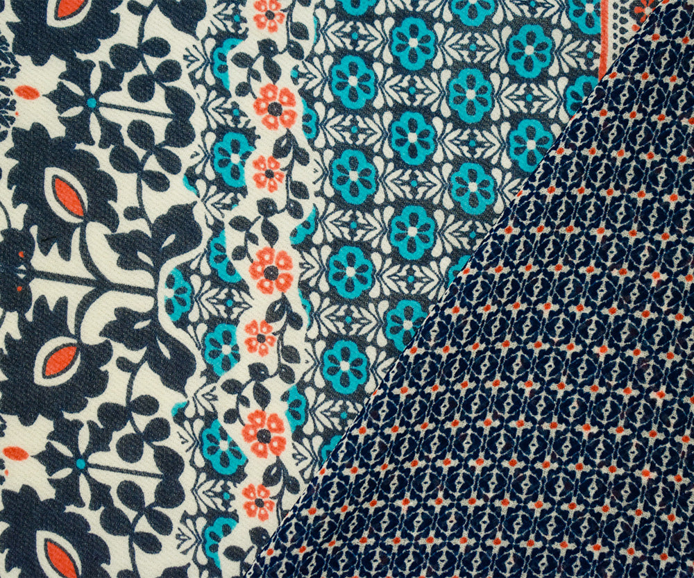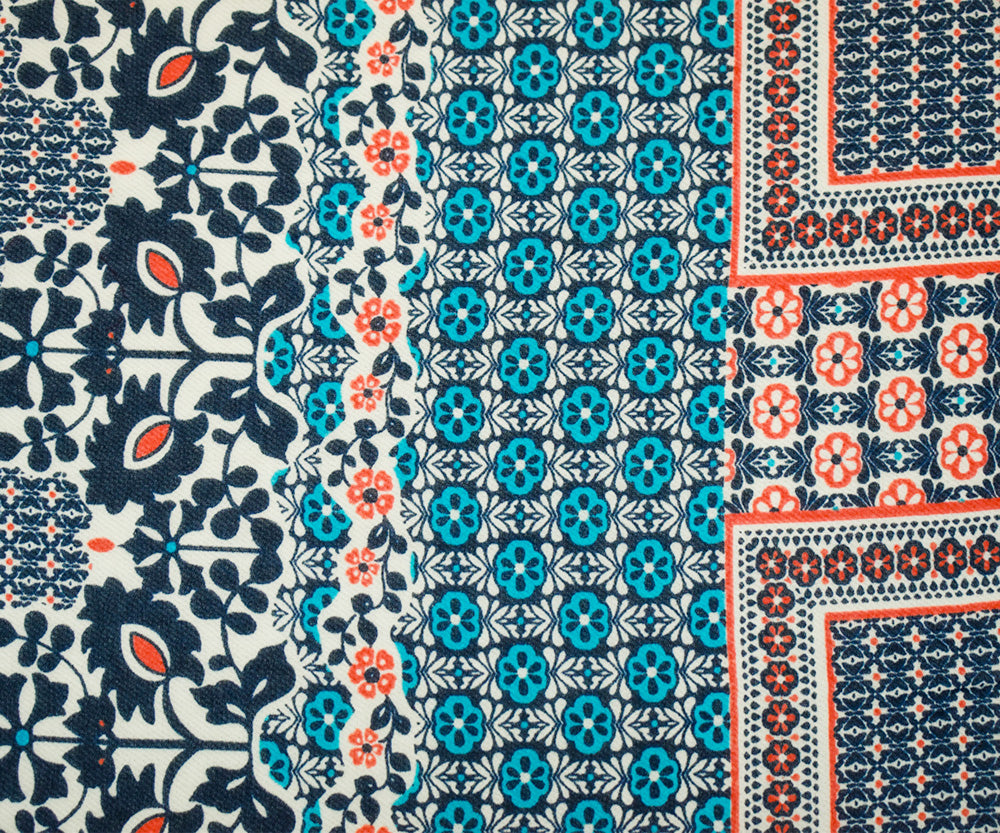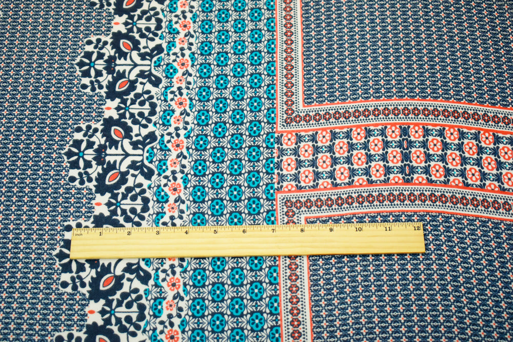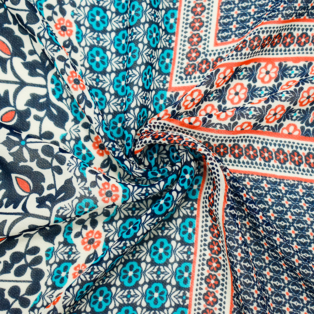 Deep Blue-Orange-Multi Border Printed Chiffon Woven Fabric