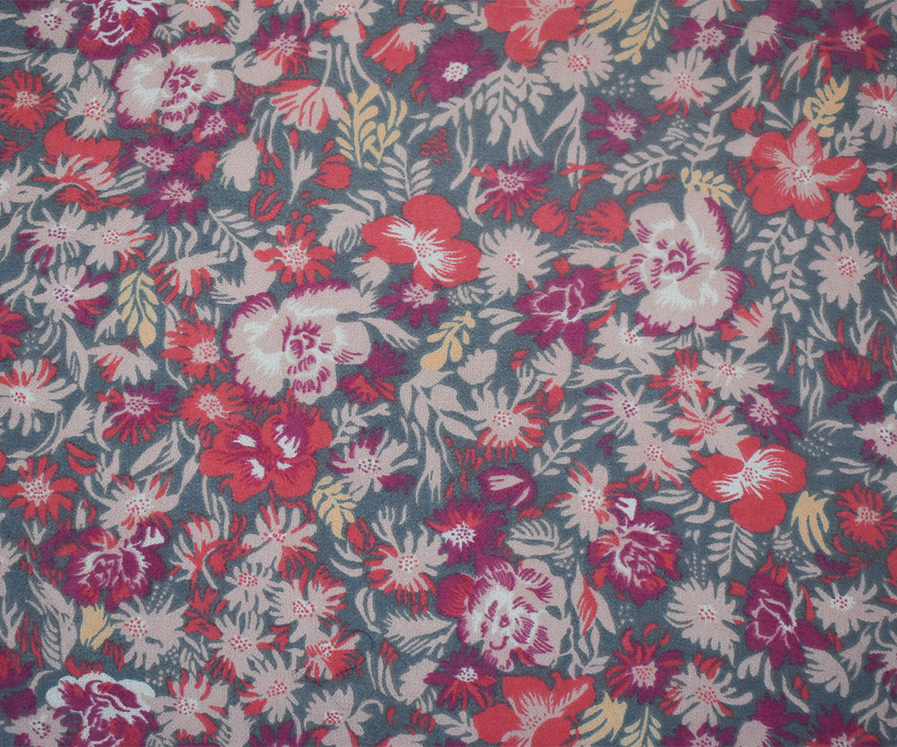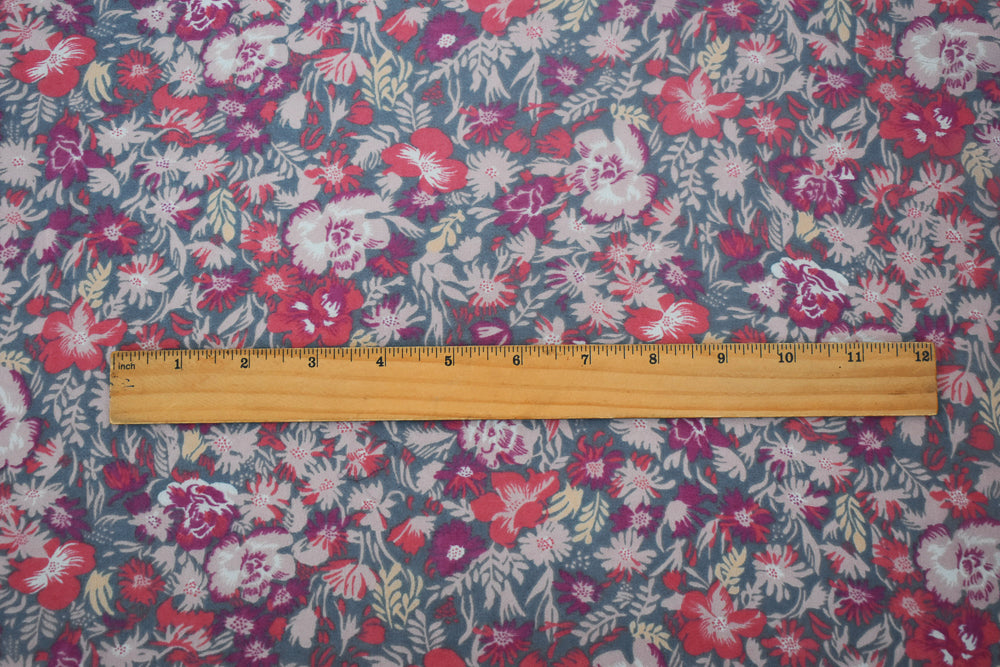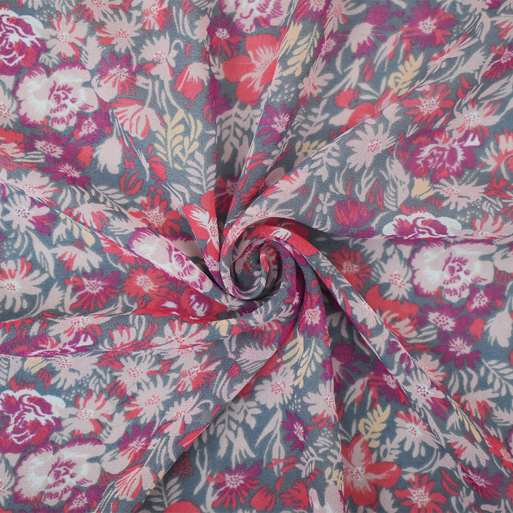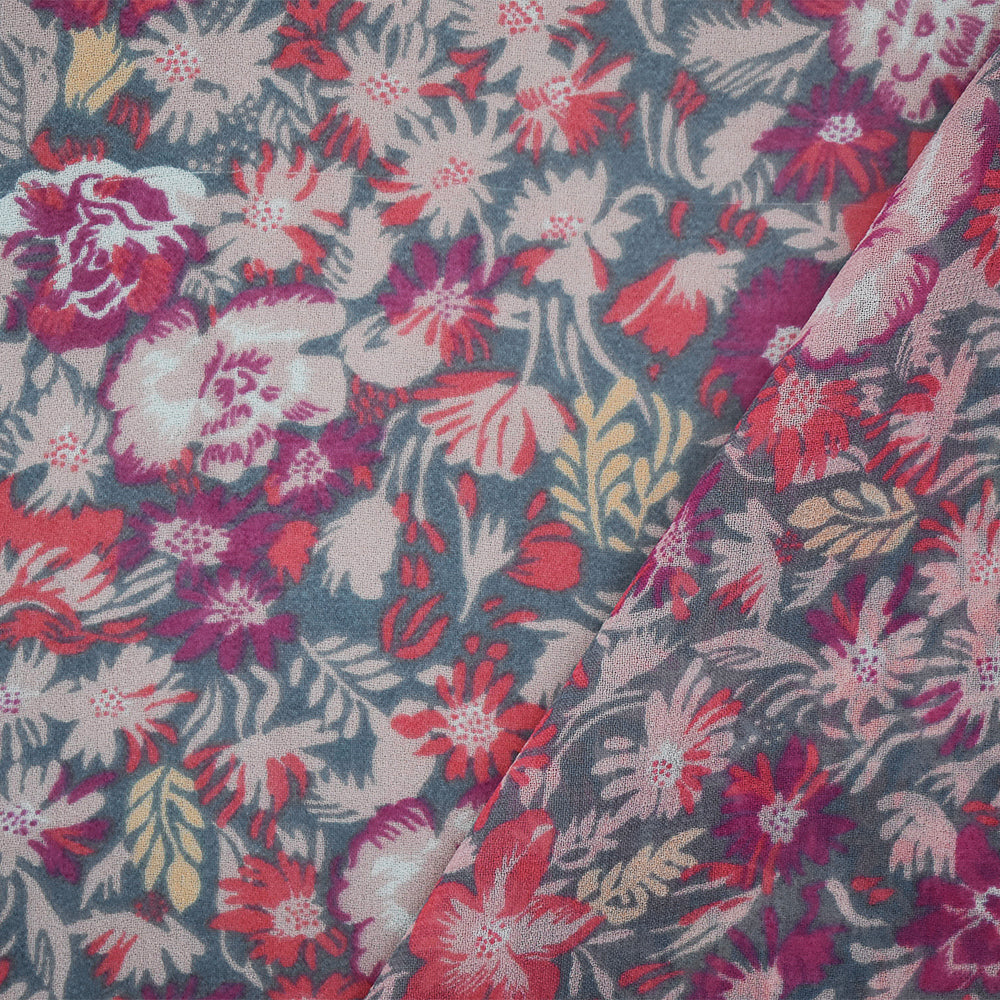 Gray-Pink-Multi Floral Printed Poly Chiffon Woven Fabric