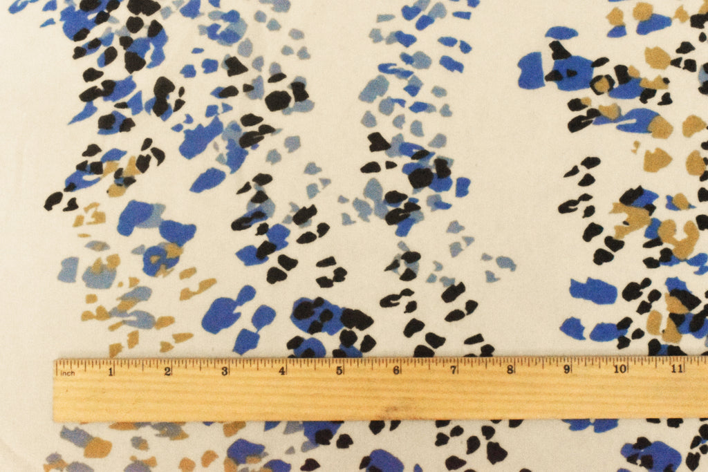 Ivory-Blue-Multi Abstract Printed Poly Chiffon Woven Fabric