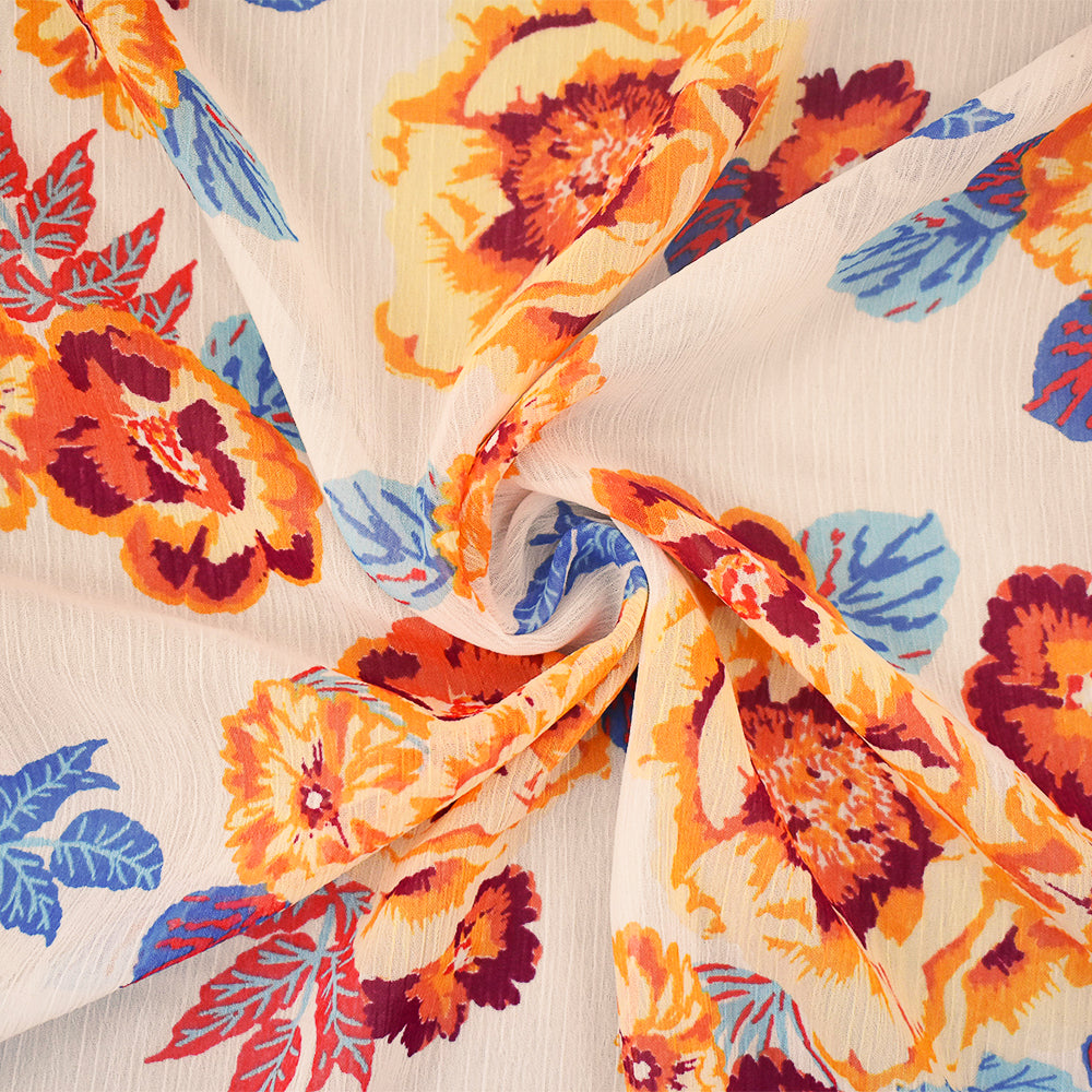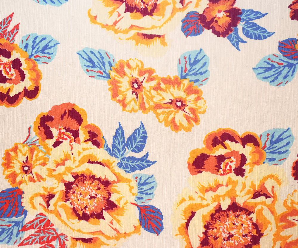 Ivory-Yellow-Multi Floral Printed Poly Yoryu Chiffon Woven Fabric
