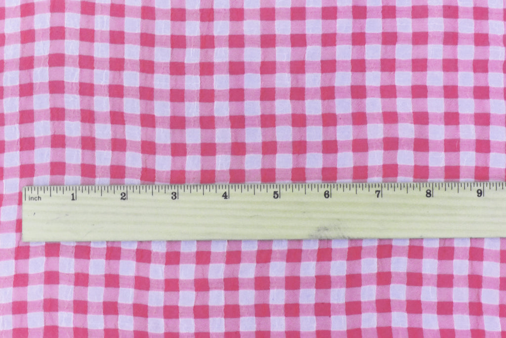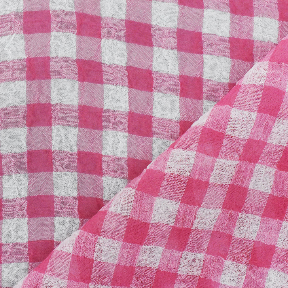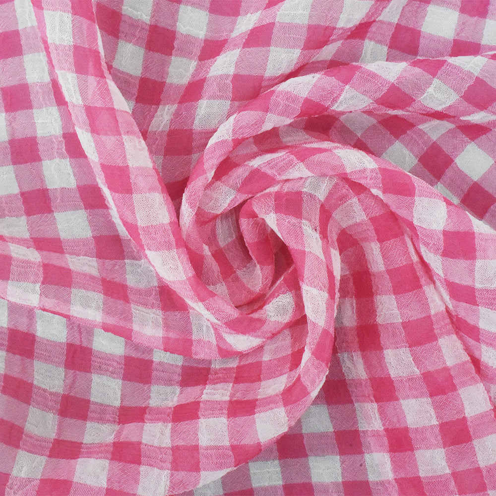 Pink-White Check Poly Crinkle Chiffon Woven Fabric