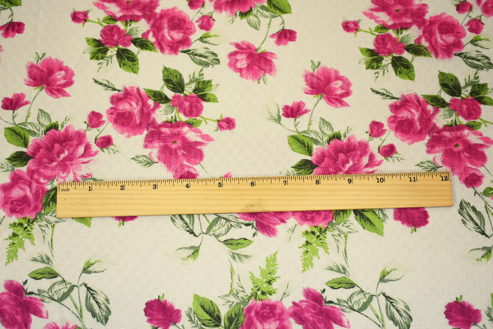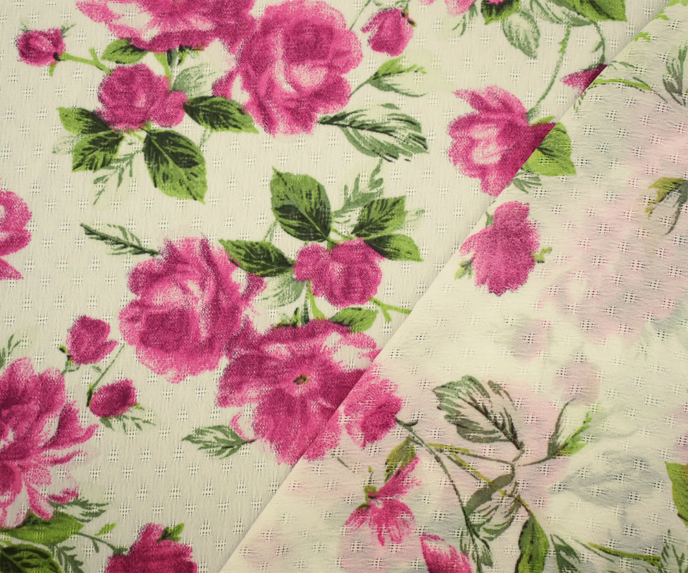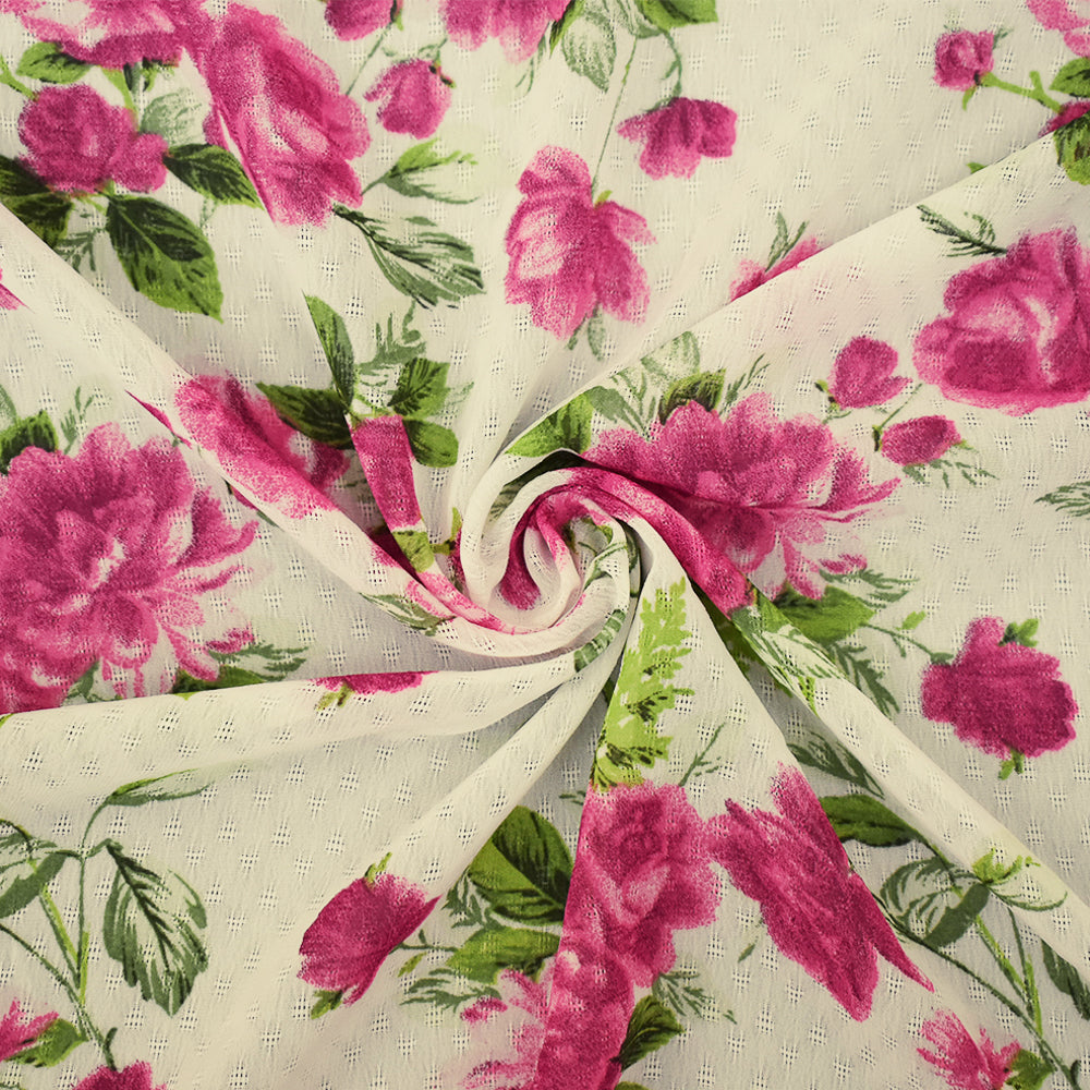 Pink-White-Green Floral Printed Poly Dobby Chiffon Woven Fabric