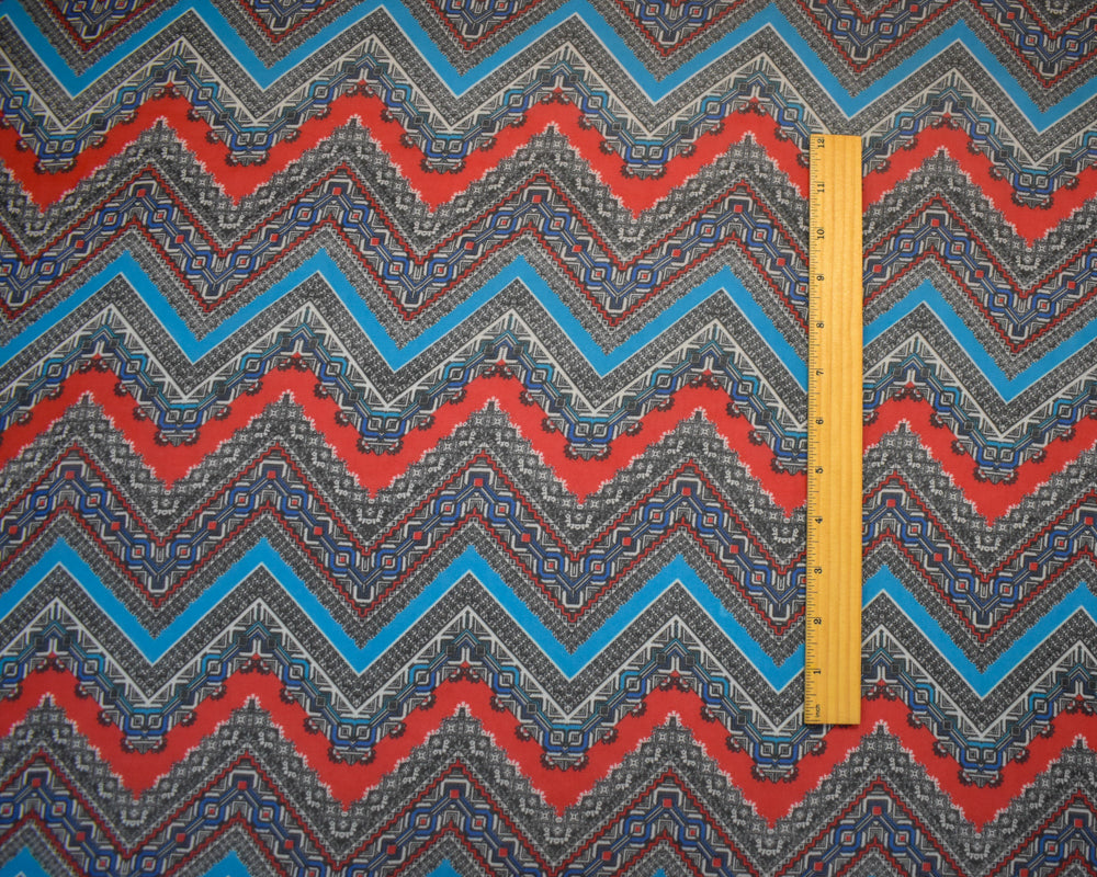 Red-Turquoise-Multi Poly Chevron Aztec Printed Chiffon Woven Fabric