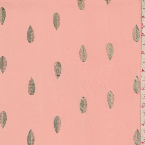 Soft Peach/Gold Foil Leaf Chiffon Fabric