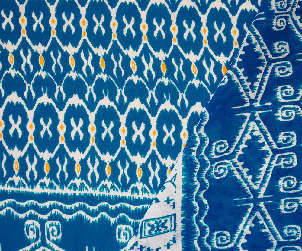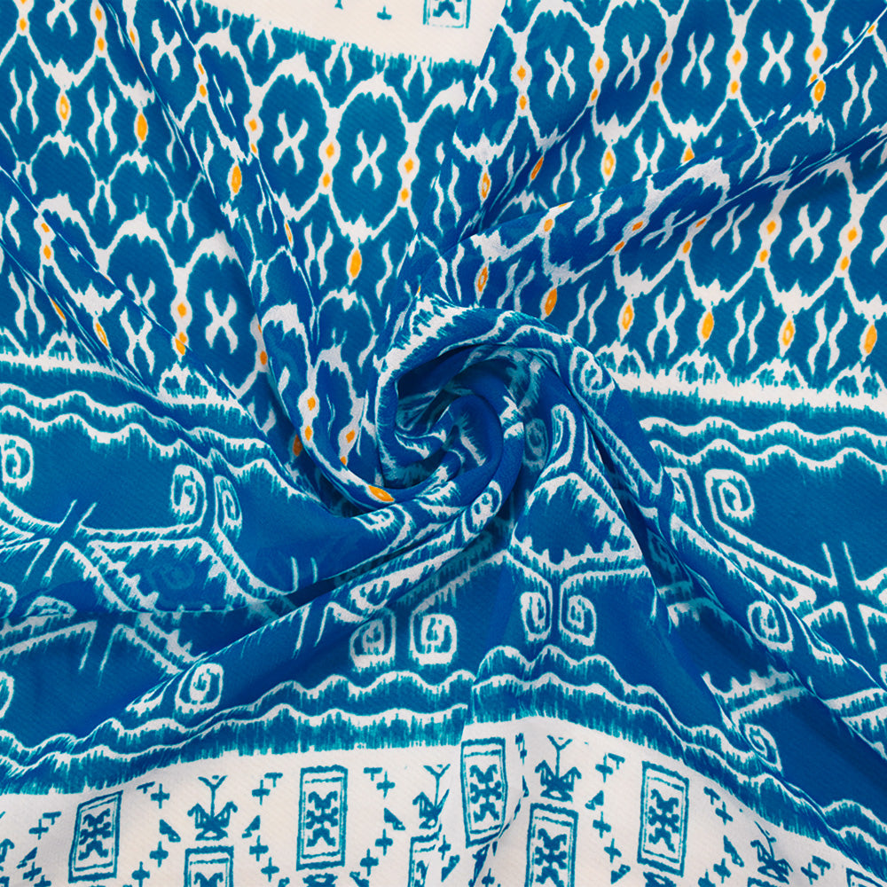 Turquoise-White-Yellow Poly Aztec Striped Printed Chiffon Woven Fabric