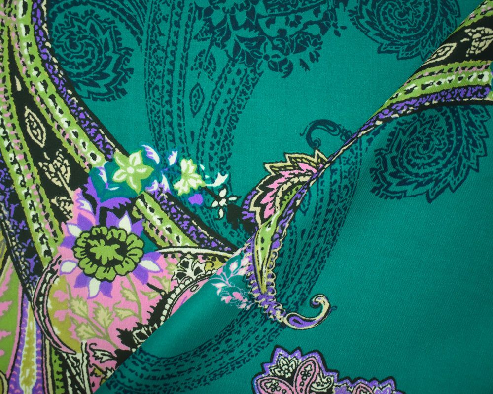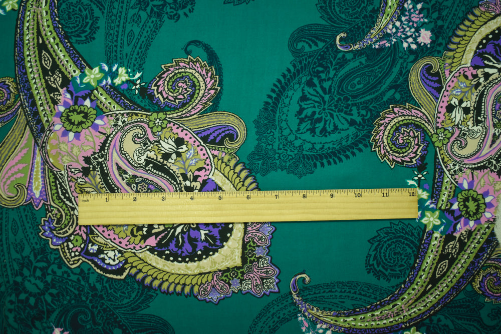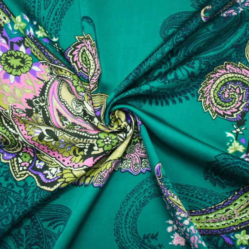 1 1/4 YD PC-Green-Pink-Multi Poly Paisley Printed Charmeuse Satin Woven Fabric