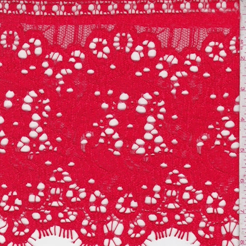 1/2 YD PC-Striking Red Floral Corded Lace Fabric