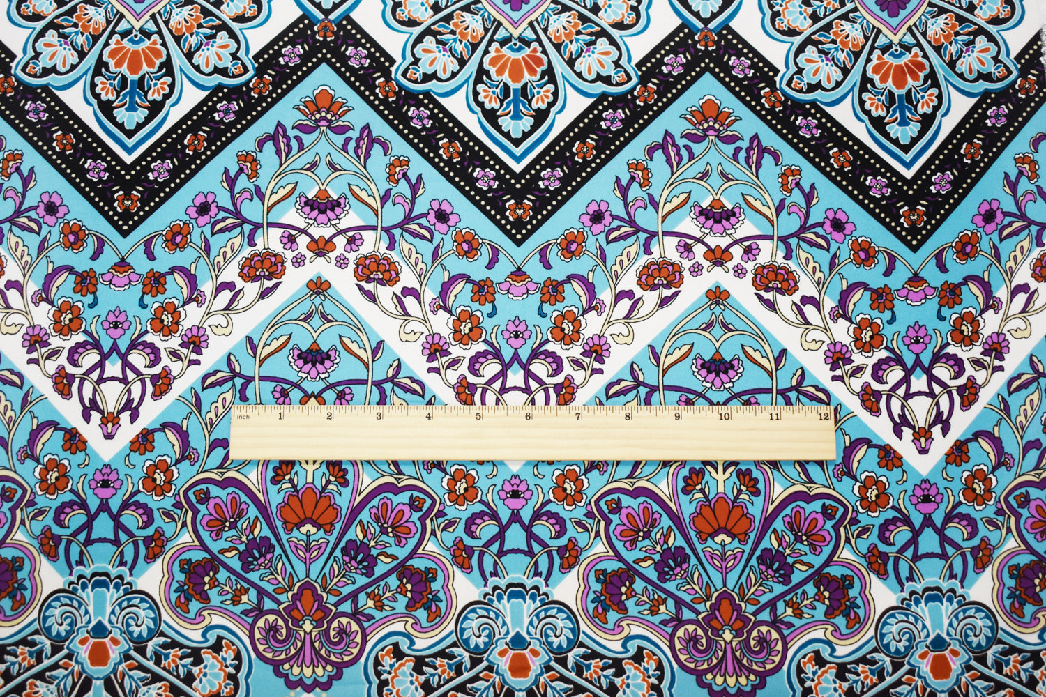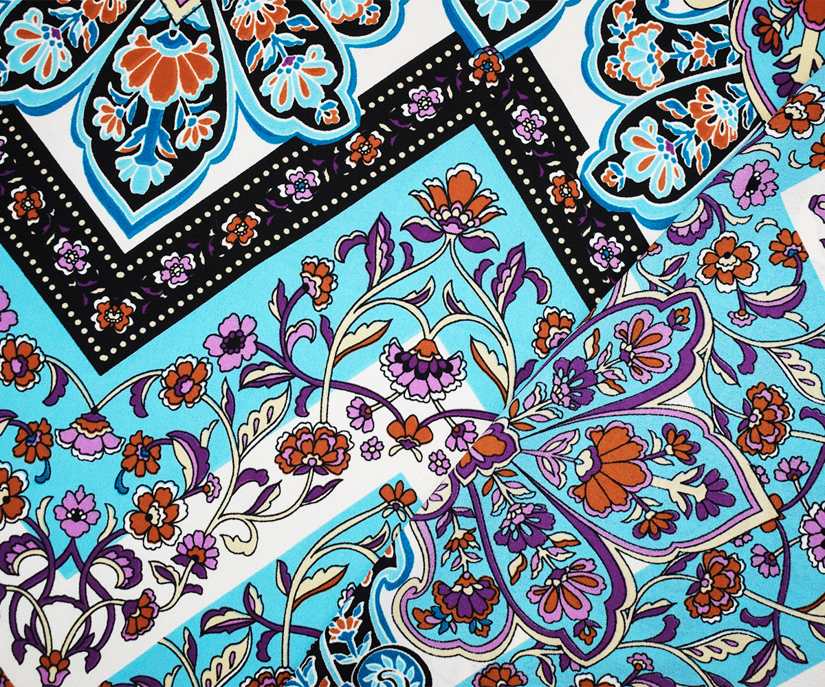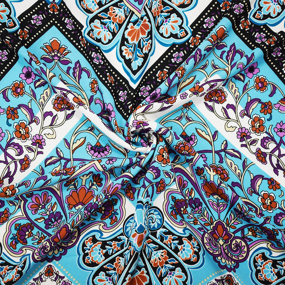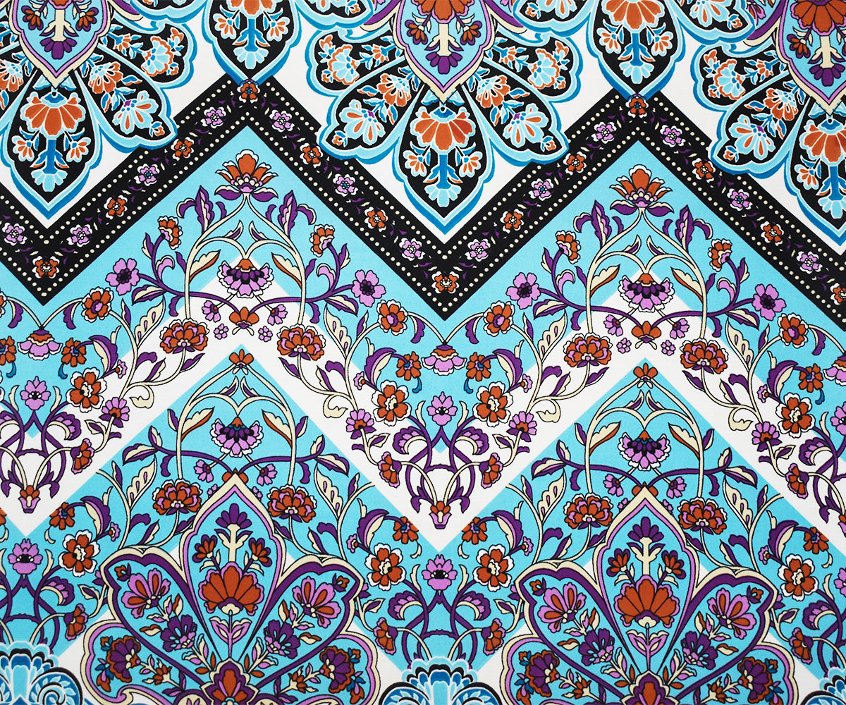 1 YD PC-Turquoise-Multi Poly Floral Chevron Printed Georgette Woven Fabric