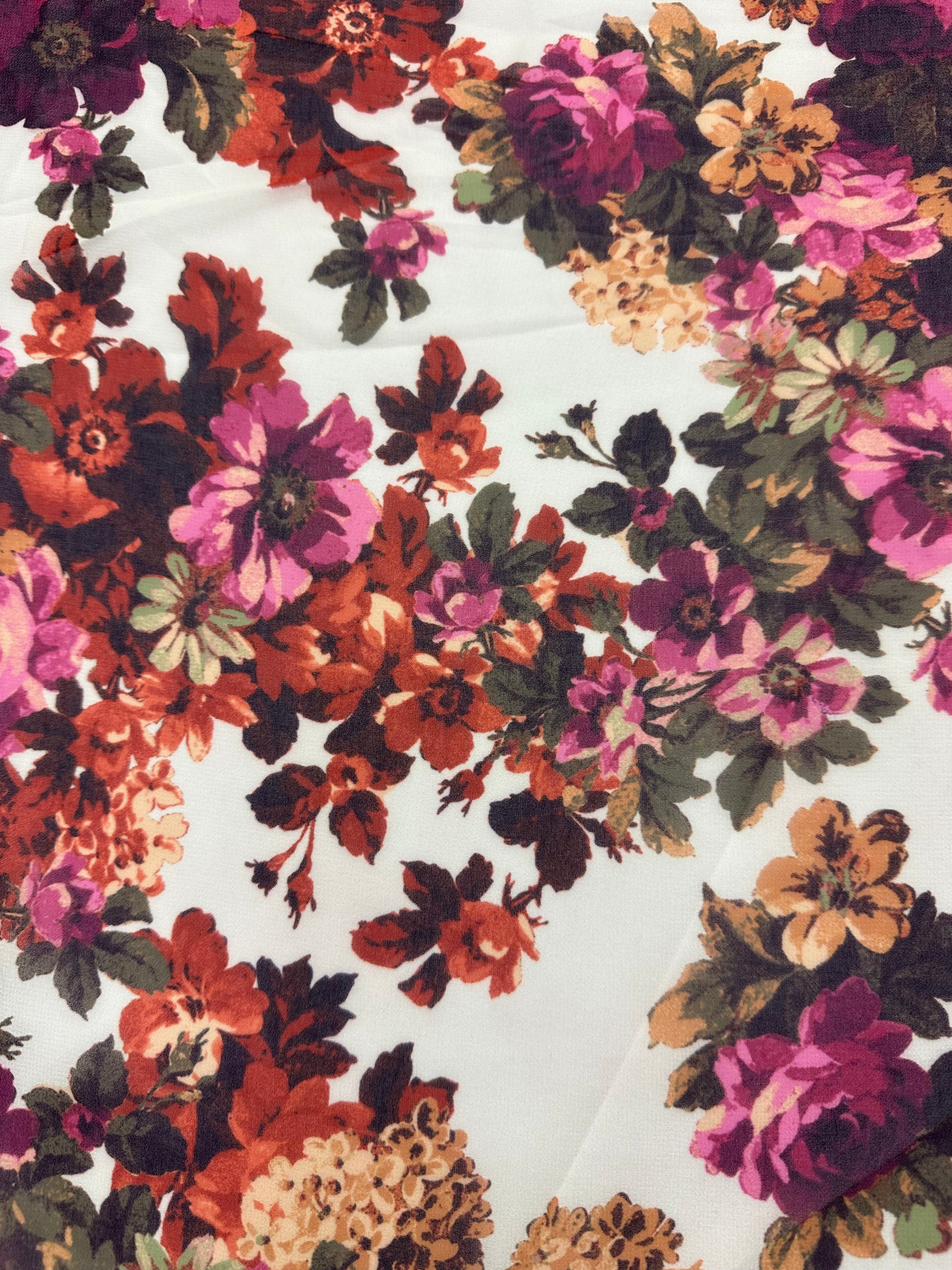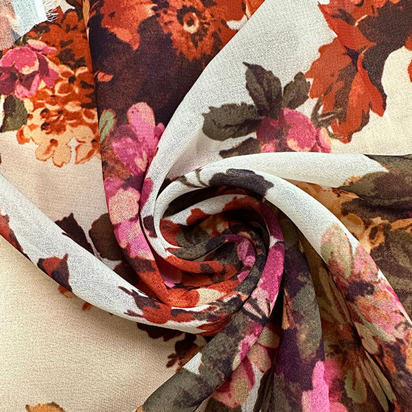 2 YD PC-Ivory Multi Floral Print Poly Chiffon Fabric
