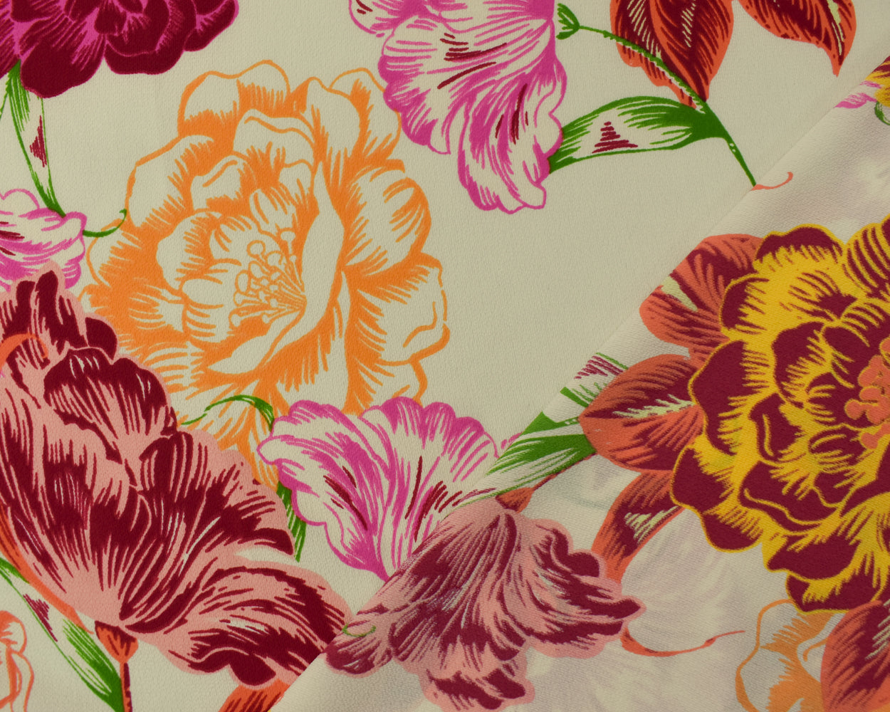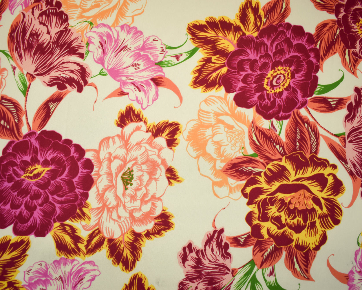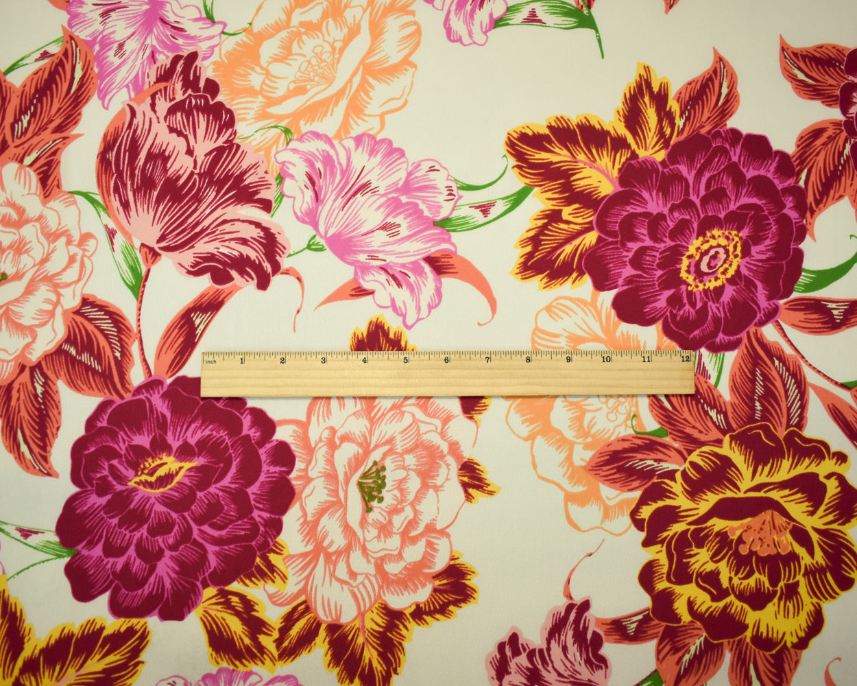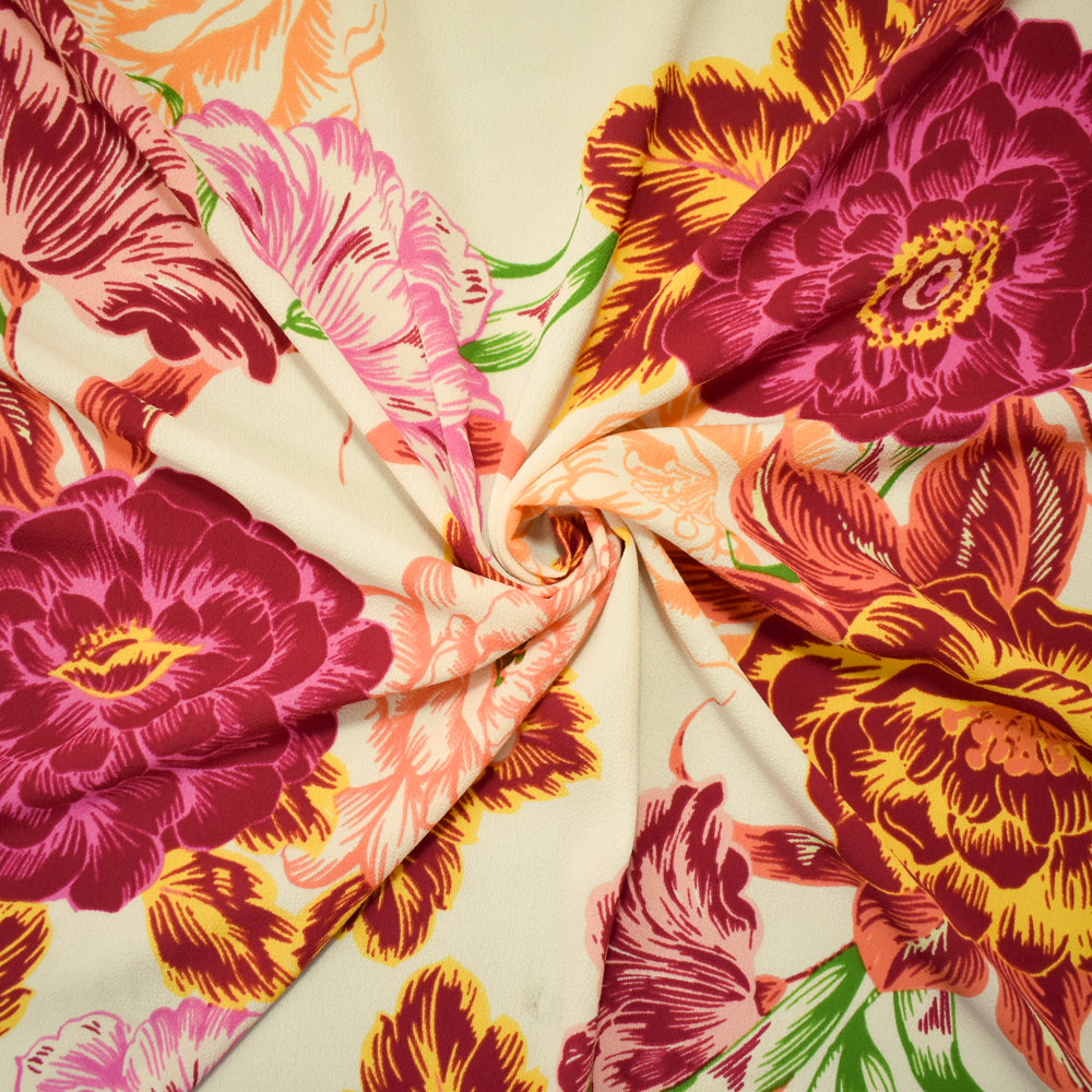 2 YD PC -Ivory-Pink-Multi Poly Floral Print Pebble Crepe Woven Fabric