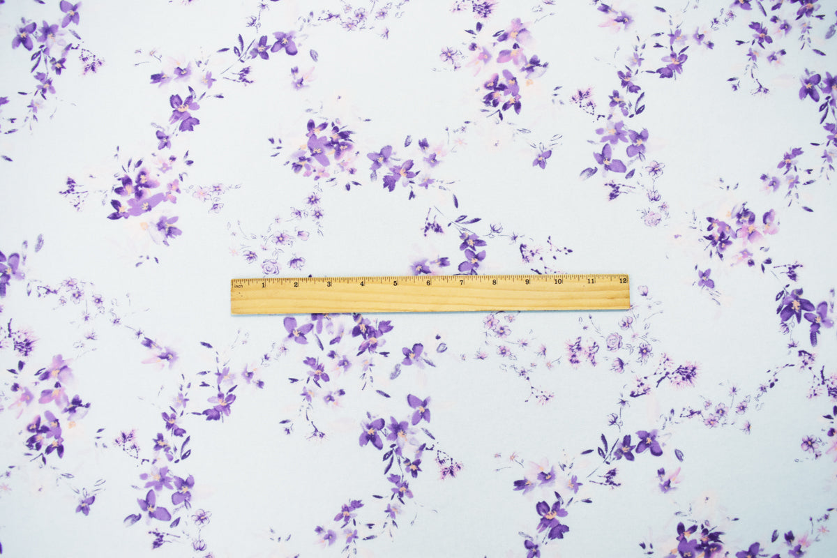 Blue-Purple-Multi Poly Floral Printed Chiffon Woven Fabric