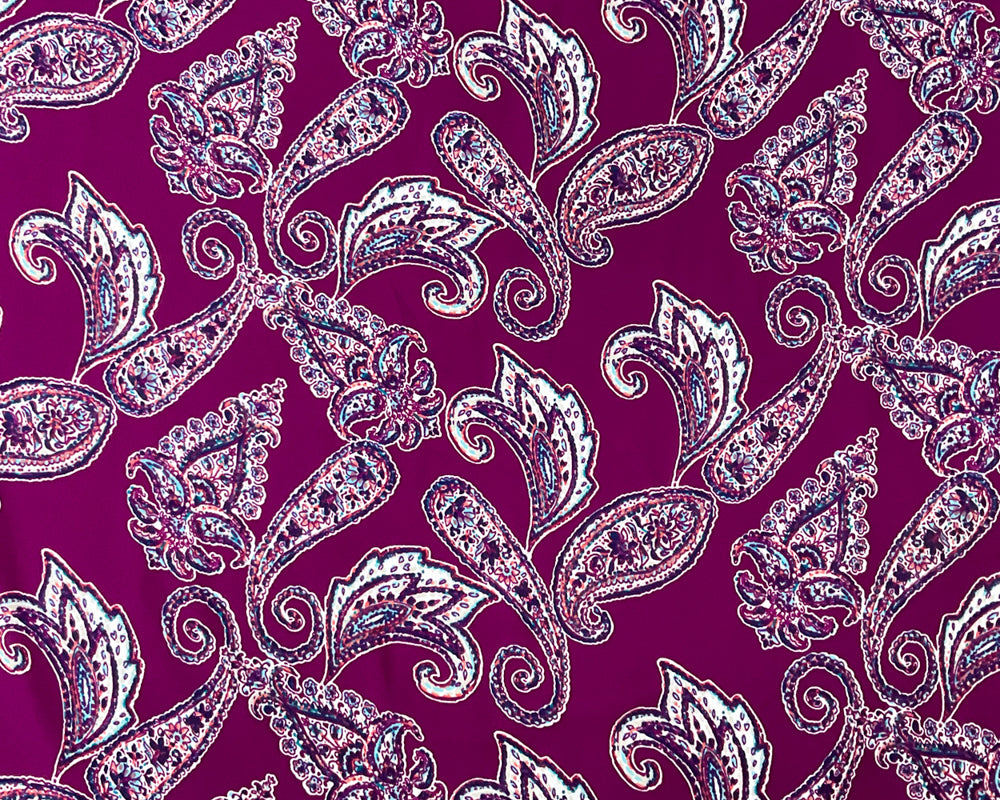 Purple-Blue-Multi Poly Paisley Printed Georgette Woven Fabric