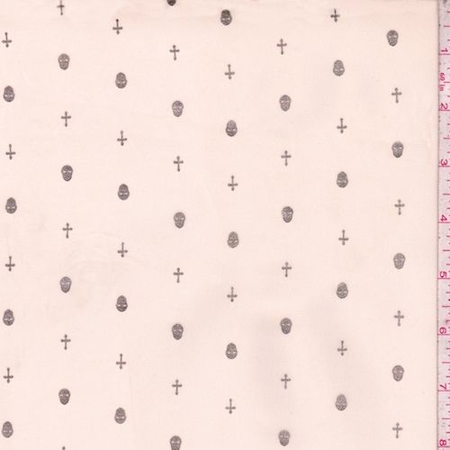 Blush Beige/Gold Mini Skull/Cross Georgette Fabric