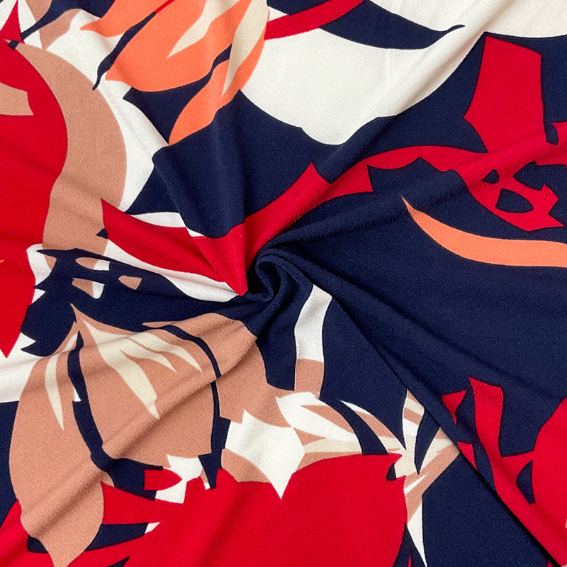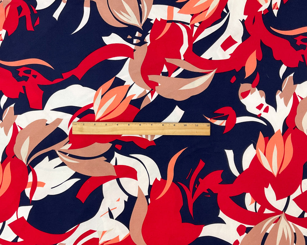 Blue-Multi Poly Stretch Floral Print ITY Jersey Knit Fabric