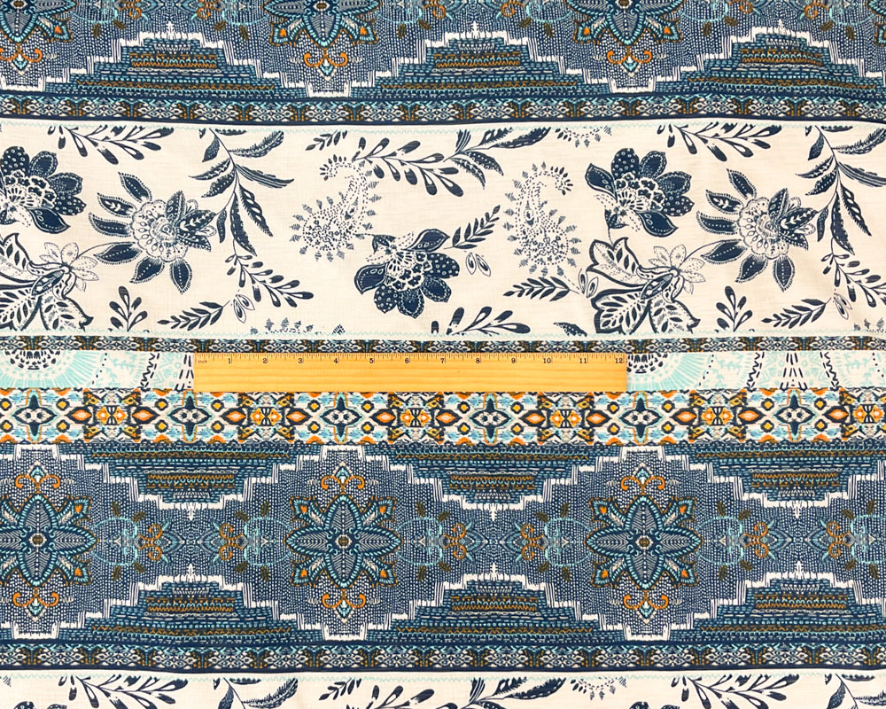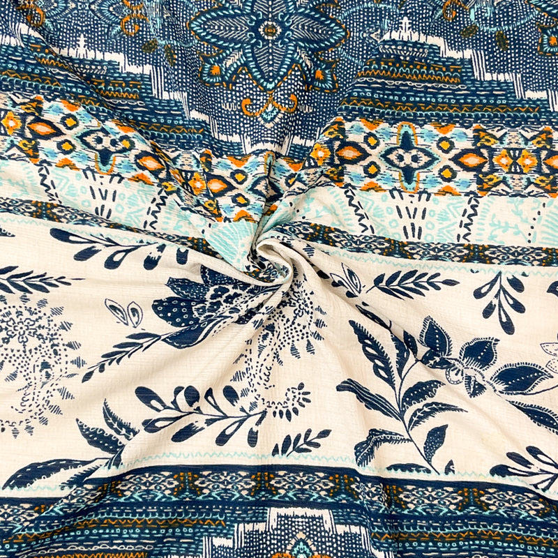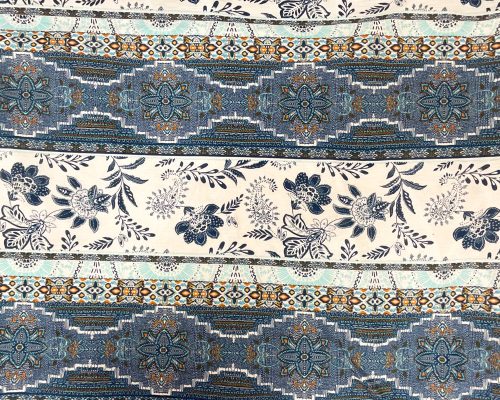 Blue-Multi Stretch Aztec Stripe Print Slub Knit Fabric