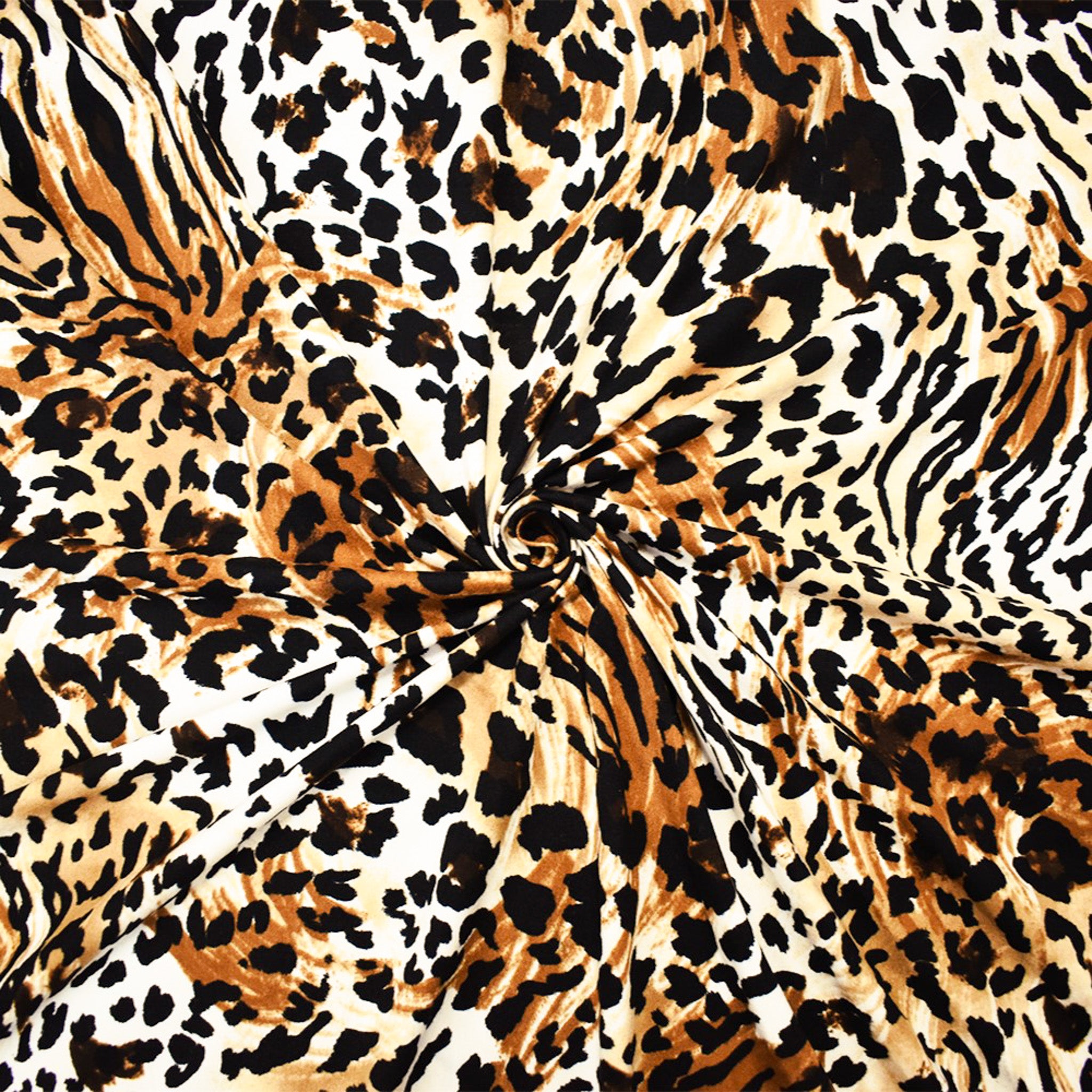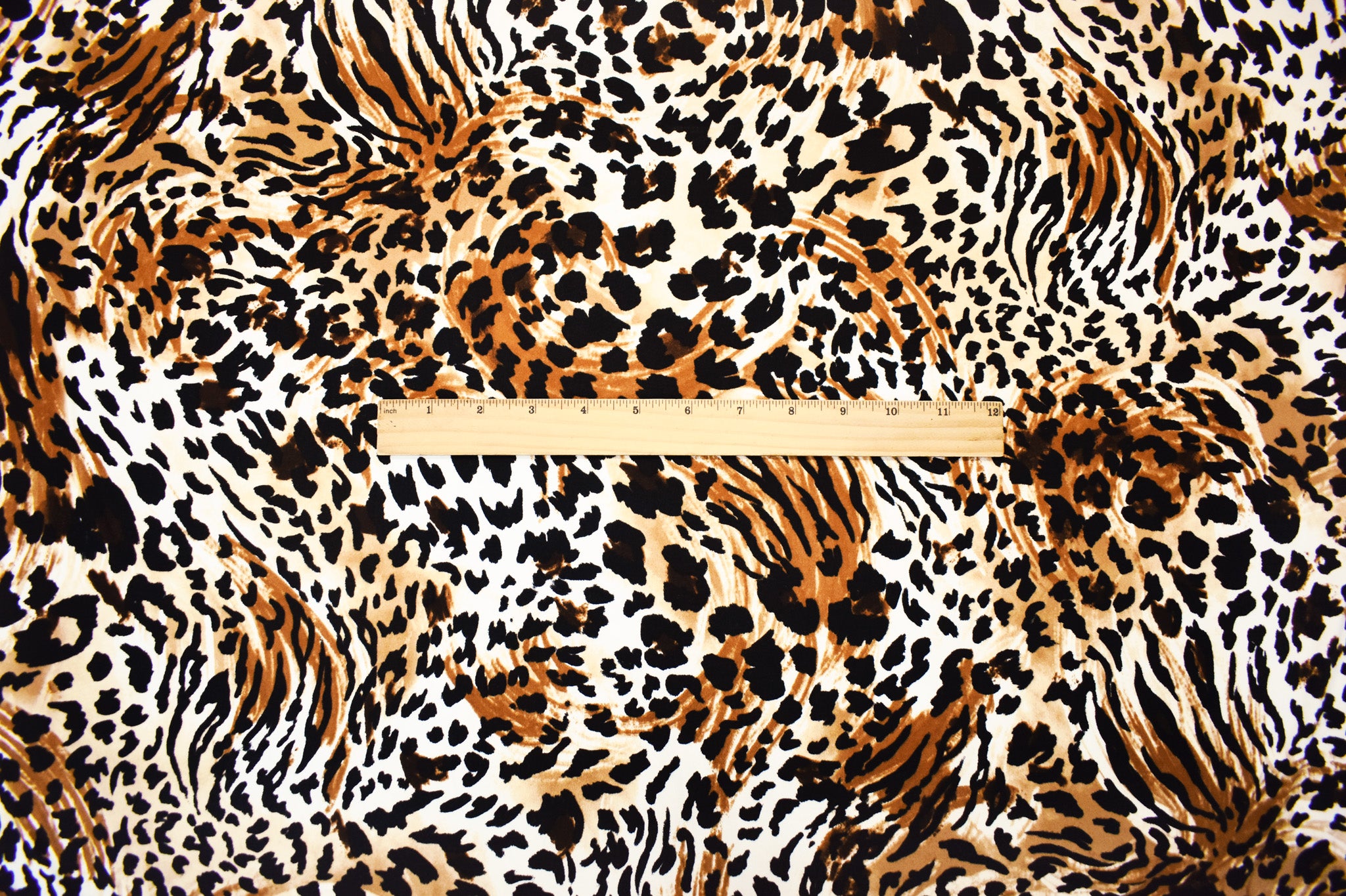 Brown-Black-Multi Poly Cheetah Printed Jersey Knit Fabric