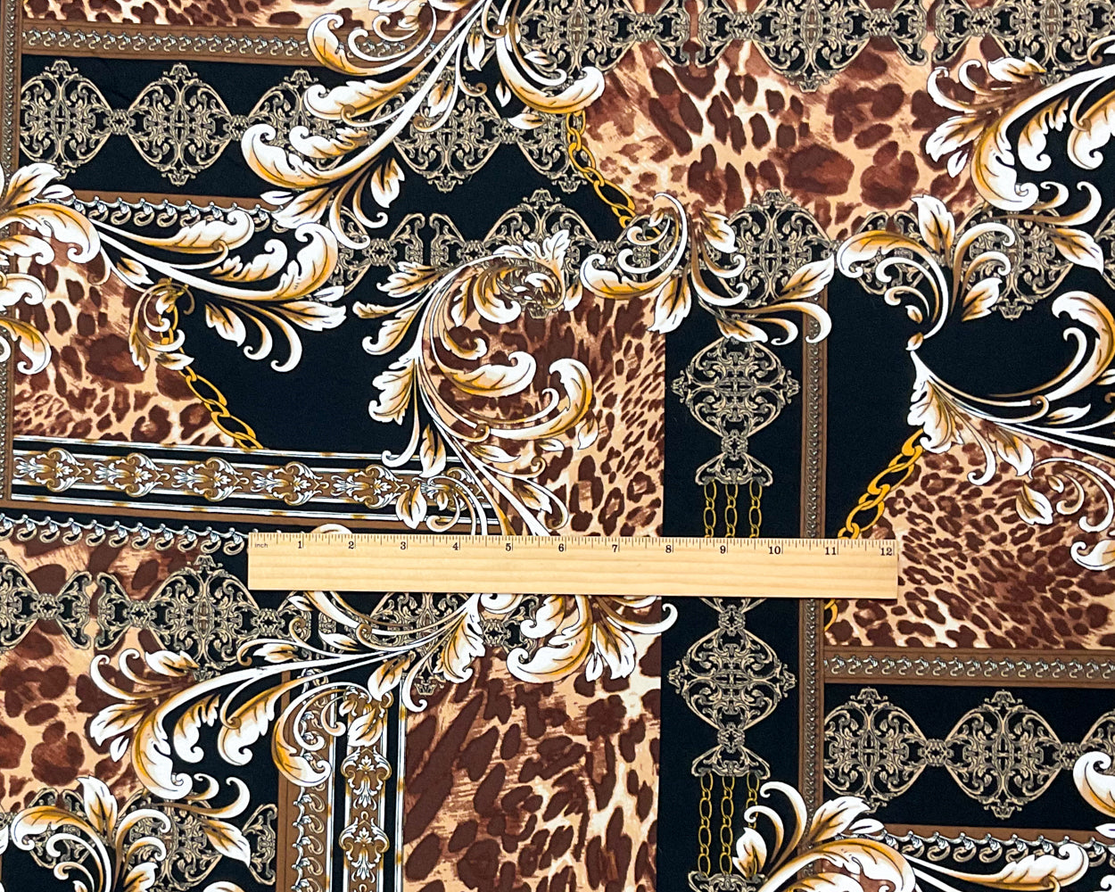 -Brown-Multi Poly Spandex Stretch Braque Print Double Brush Jersey Knit Fabric