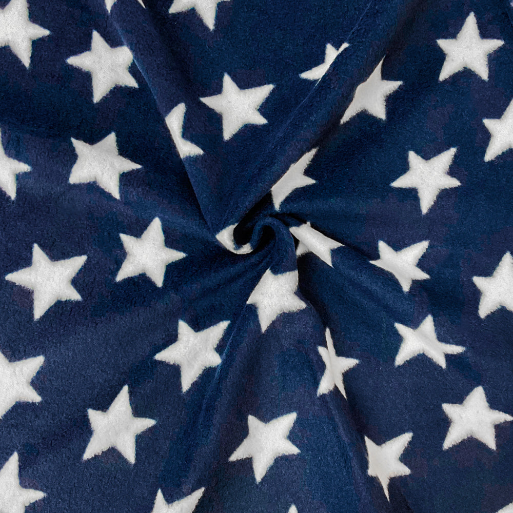 Deep Navy Blue-Multi Polyester Star Printed Polar Fleece Knit Fabric