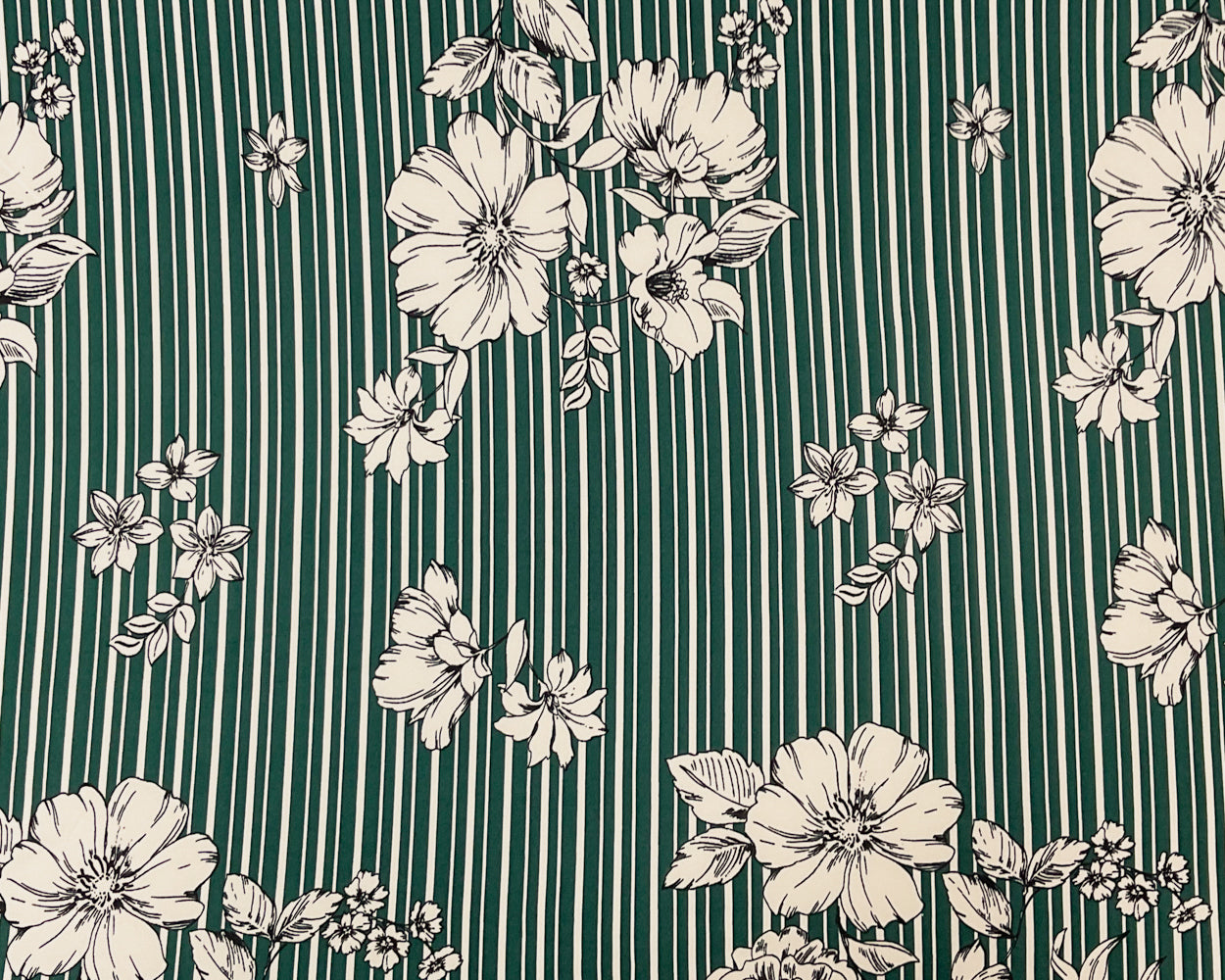 Green-Multi Poly Spandex Stretch Floral Stripe Print DB Jersey Knit Fabric